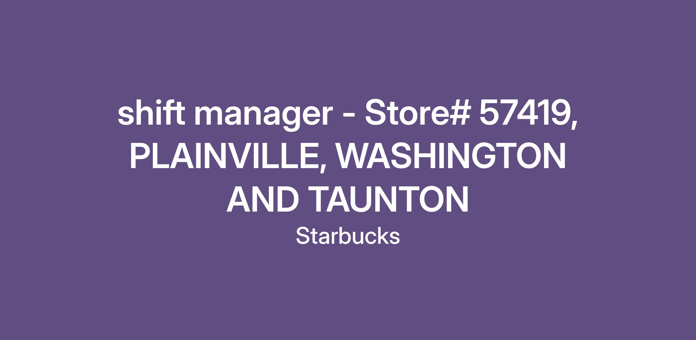 shift manager - Store# 57419, PLAINVILLE, WASHINGTON AND TAUNTON