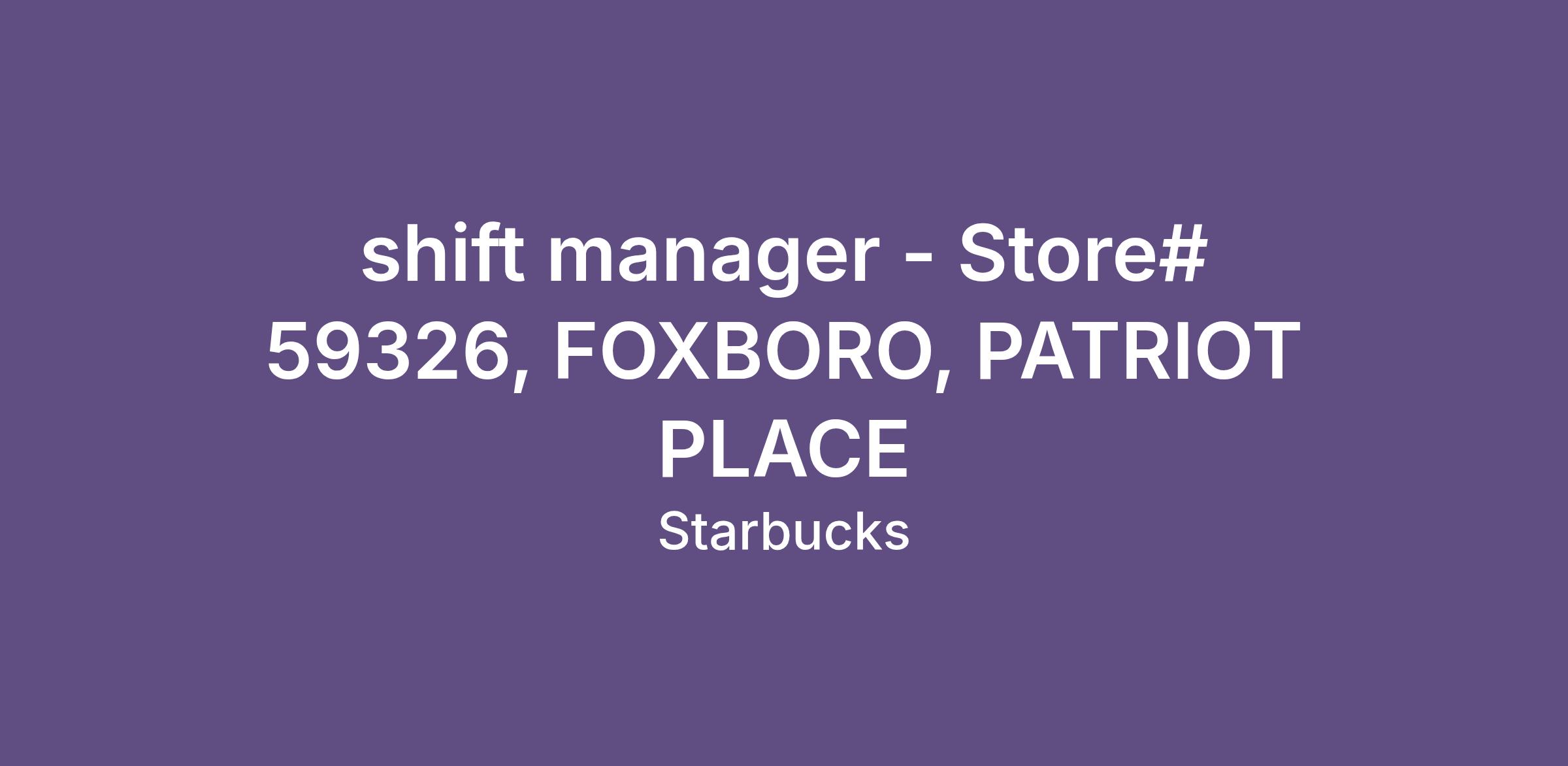 shift manager - Store# 59326, FOXBORO, PATRIOT PLACE