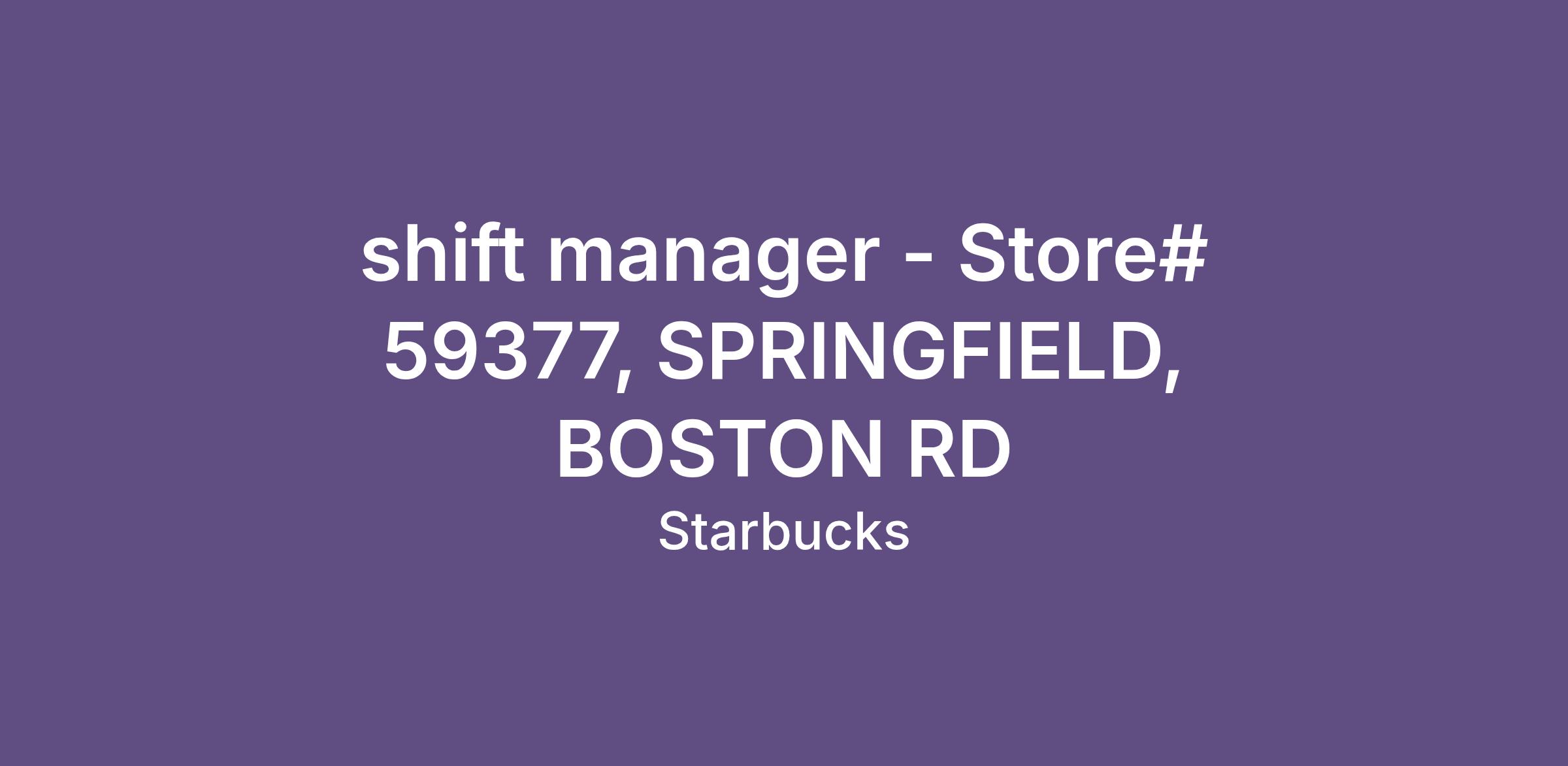 shift manager - Store# 59377, SPRINGFIELD, BOSTON RD