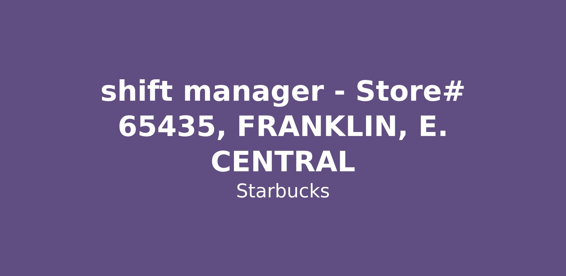 shift manager - Store# 65435, FRANKLIN, E. CENTRAL
