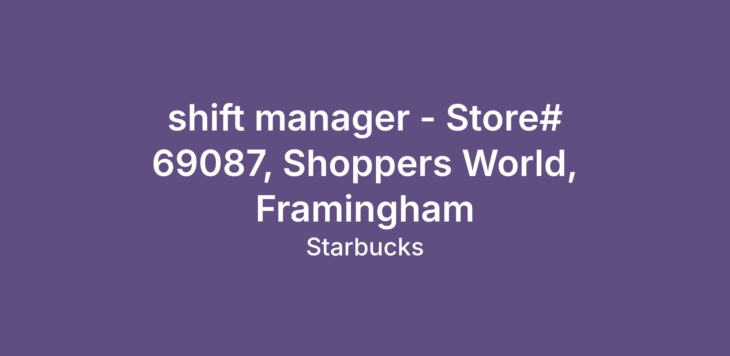 We believe in creating a warm and welcoming space where every cup of coffee sparks connection. Every shift is a chance to brighten someone’s day. As a shift manager you will lead with purpose and prepare for the next step in your Starbucks journey.  Through hands-on experience, mentorship, and training, you’ll learn to run a multi-million dollar business, lead a team, and create a welcoming space for your community.