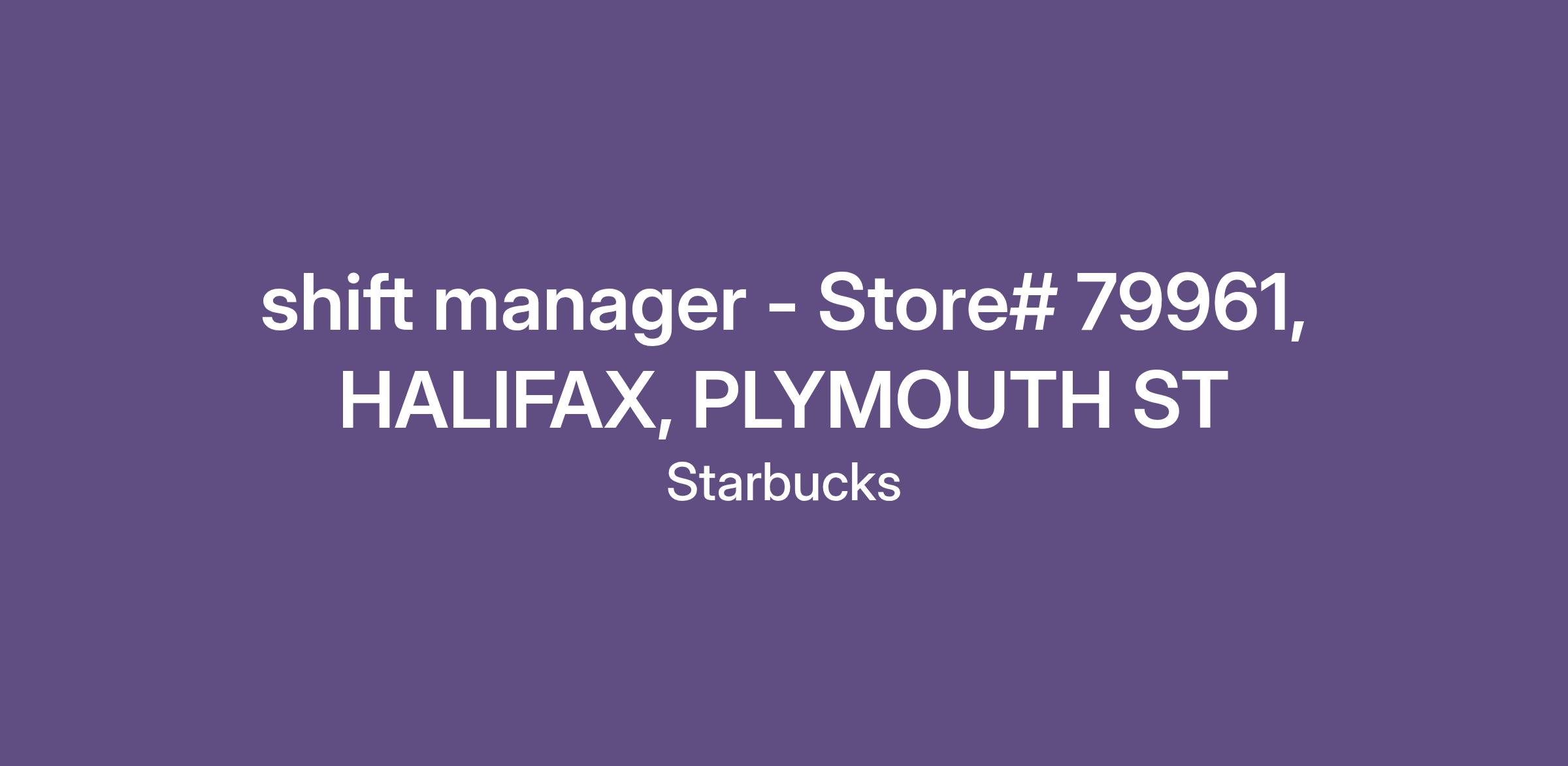 shift manager - Store# 79961, HALIFAX, PLYMOUTH ST