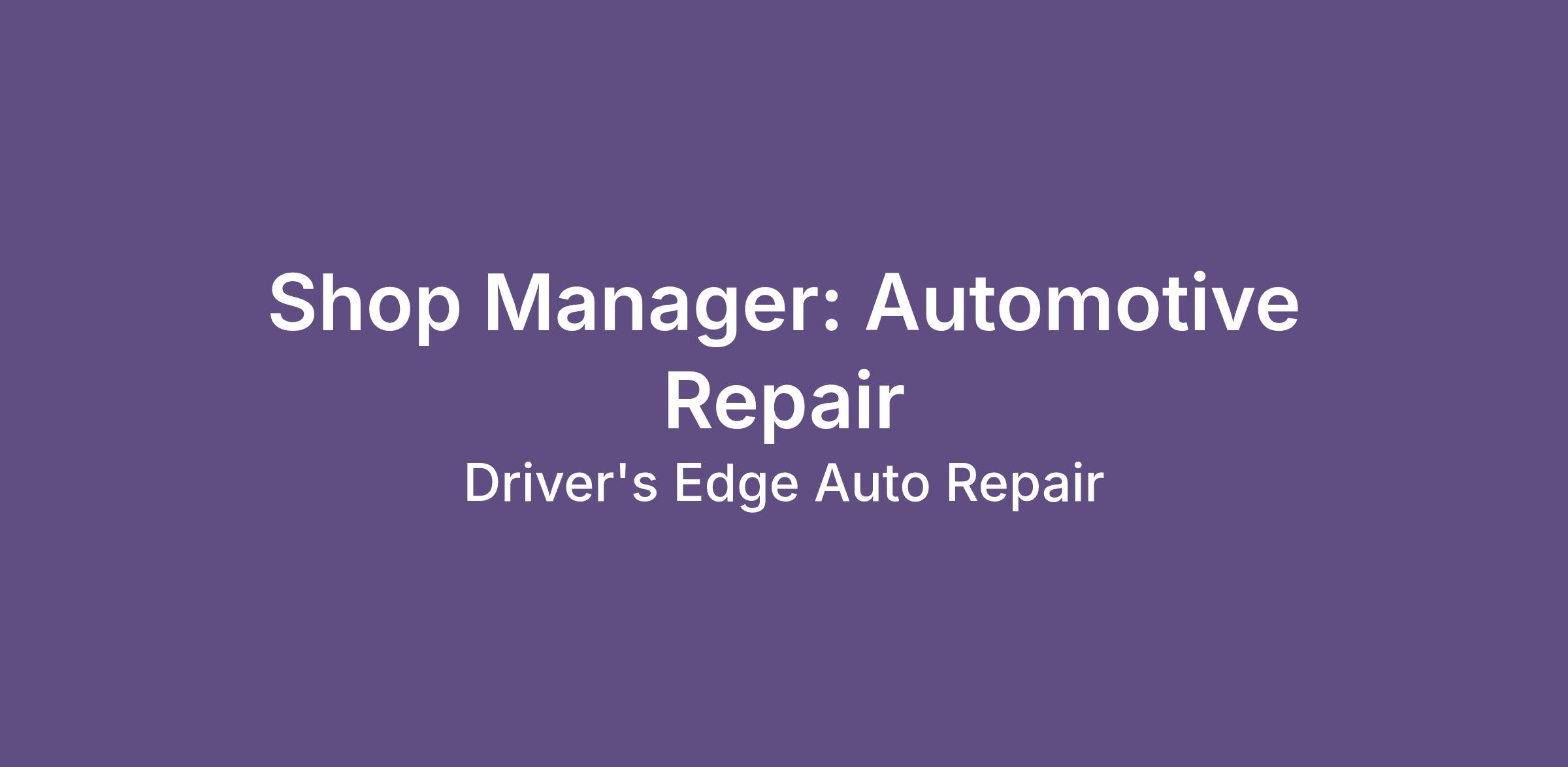 If you are a motivated and experienced Automotive Shop Manager looking to take the next step in your career, we encourage you to apply for this exciting opportunity at Driver's Edge. Join our team and help us provide top-notch automotive services to our valued customers.