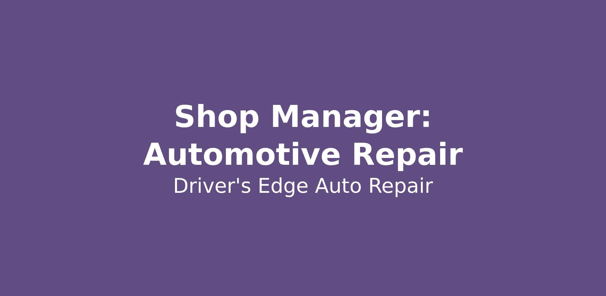 If you are a motivated and experienced Automotive Shop Manager looking to take the next step in your career, we encourage you to apply for this exciting opportunity at Driver's Edge. Join our team and help us provide top-notch automotive services to our valued customers.