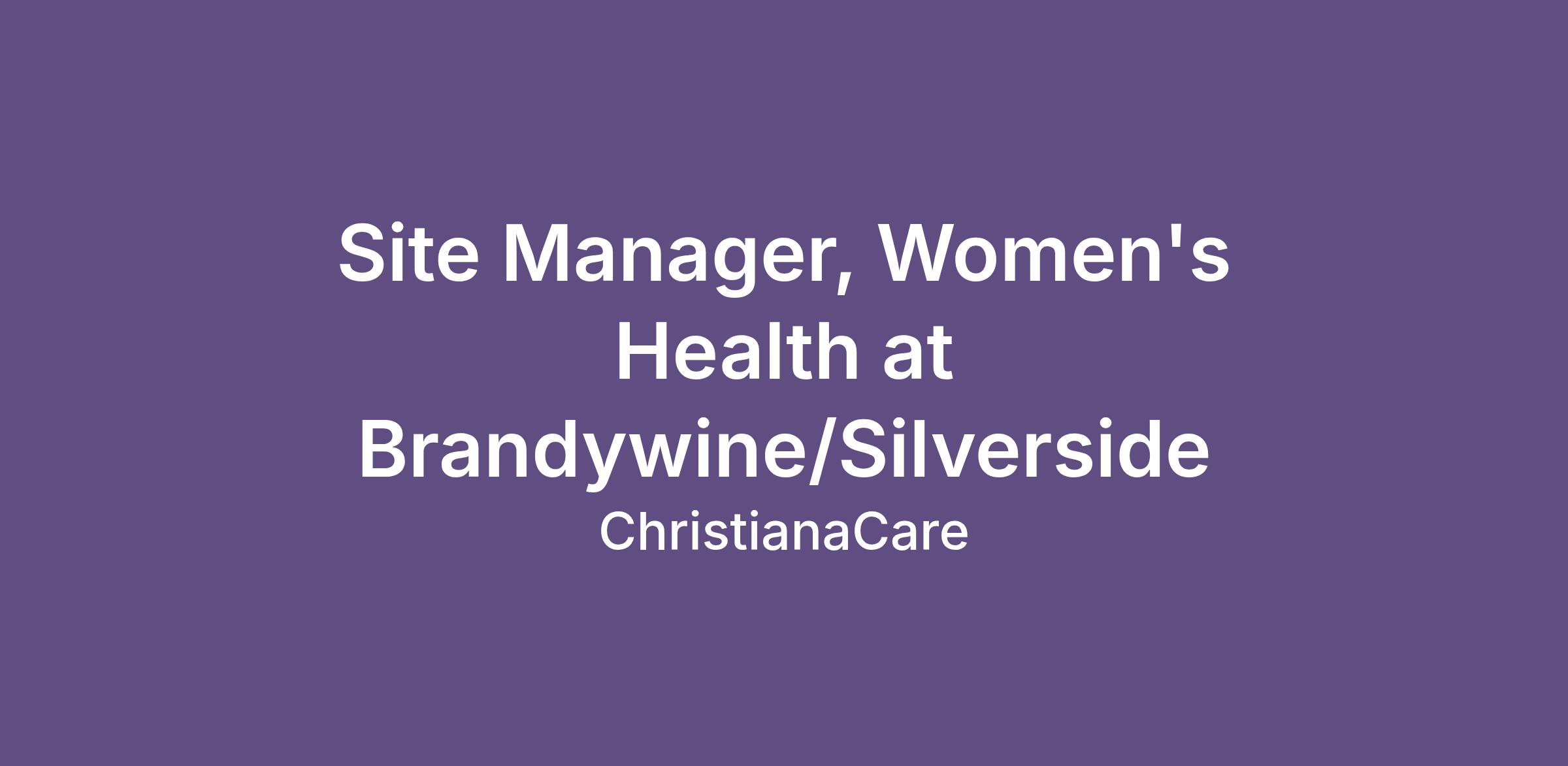 The Medical Group of ChristianaCare is looking for a Site Manager to cover two Women's Health Practices at Silverside and Brandywine in Wilmington,De.