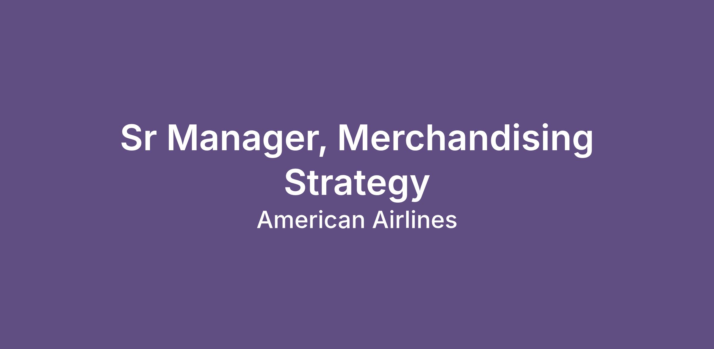 The Sr Manager, Merchandising Strategy is part of the Digital Ancillary Offers Team within the Customer Experience Digital Transformation Organization and leads the strategy, roadmap, and execution of American’s Ancillary portfolio, spanning products like Prepaid Bags, Instant Upgrades, Seats, and Inflight Entertainment. This leader collaborates closely with partners across Customer Experience, Revenue Management, Technology, Finance, Airports, Tech Ops, and others to advance key commercial initiatives and deliver meaningful financial impact.