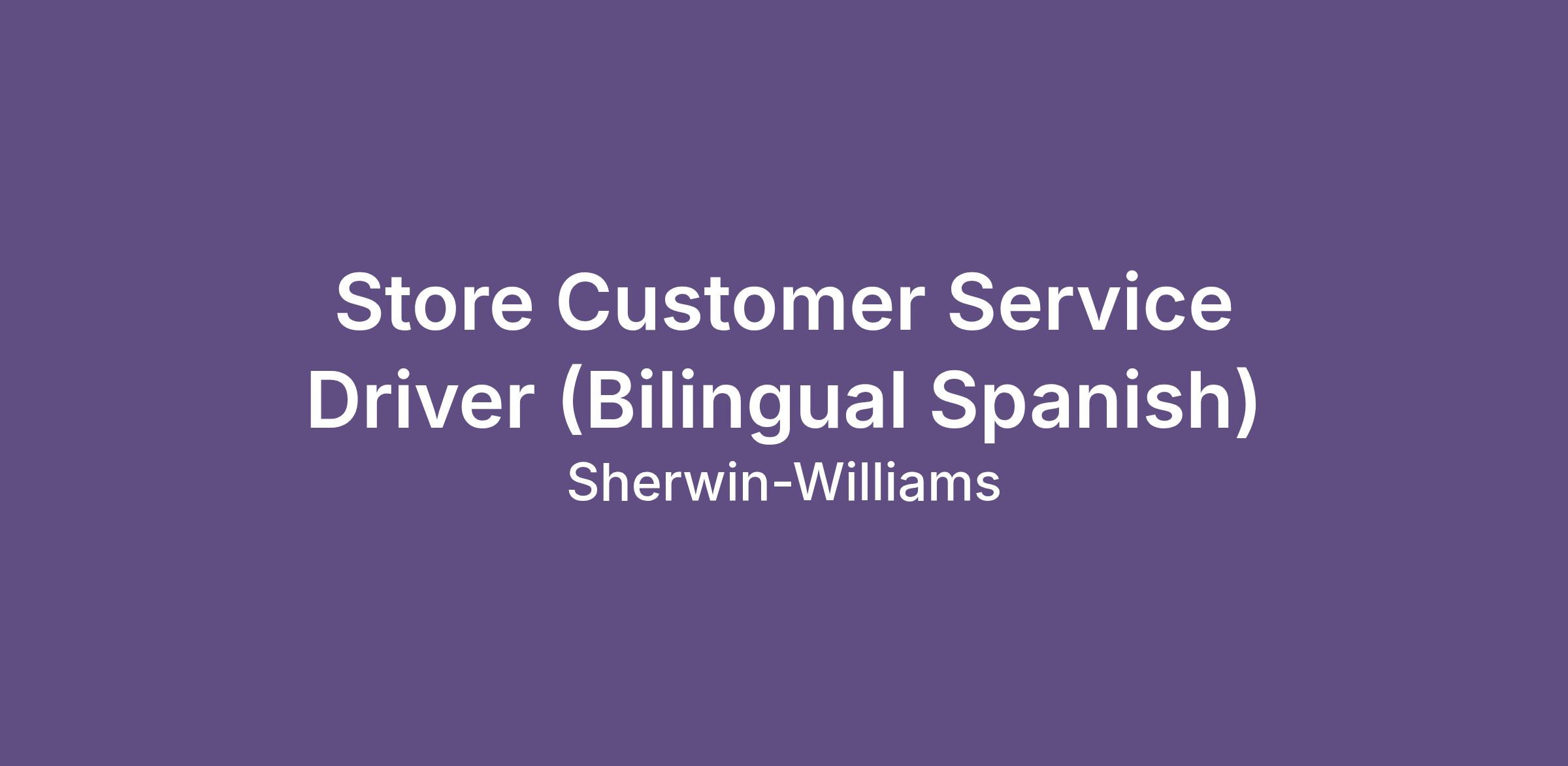 Bilingual Spanish Required - This position works closely with wholesale and retail customers to determine their needs, answer their questions about Sherwin-Williams products, and recommend the right solutions. In this position, you will also be responsible for delivering products to customers from Sherwin-Williams stores in a safe and timely manner using Company vans or pickup trucks.