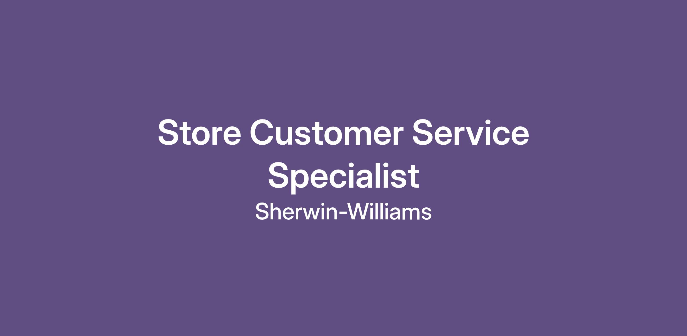 This position is essential to the success of our retail stores. Customer Service Specialists work closely with wholesale and retail customers to determine their needs, answer their questions about Sherwin-Williams products, and recommend the right solutions. Customer Service Specialists are also expected to promptly resolve any customer concerns and ensure maximum client satisfaction as well as stay up-to-date with product features and maintain the high quality and visual standards of the products and store. Customer Service Specialists are tasked with achieving excellent customer service, while consistently meeting the store’s sales goals.