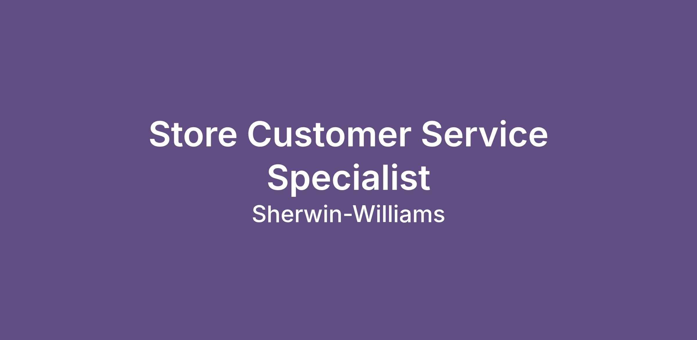 This position is essential to the success of our retail stores. Customer Service Specialists work closely with wholesale and retail customers to determine their needs, answer their questions about Sherwin-Williams products, and recommend the right solutions. Customer Service Specialists are also expected to promptly resolve any customer concerns and ensure maximum client satisfaction as well as stay up-to-date with product features and maintain the high quality and visual standards of the products and store. Customer Service Specialists are tasked with achieving excellent customer service, while consistently meeting the store’s sales goals.