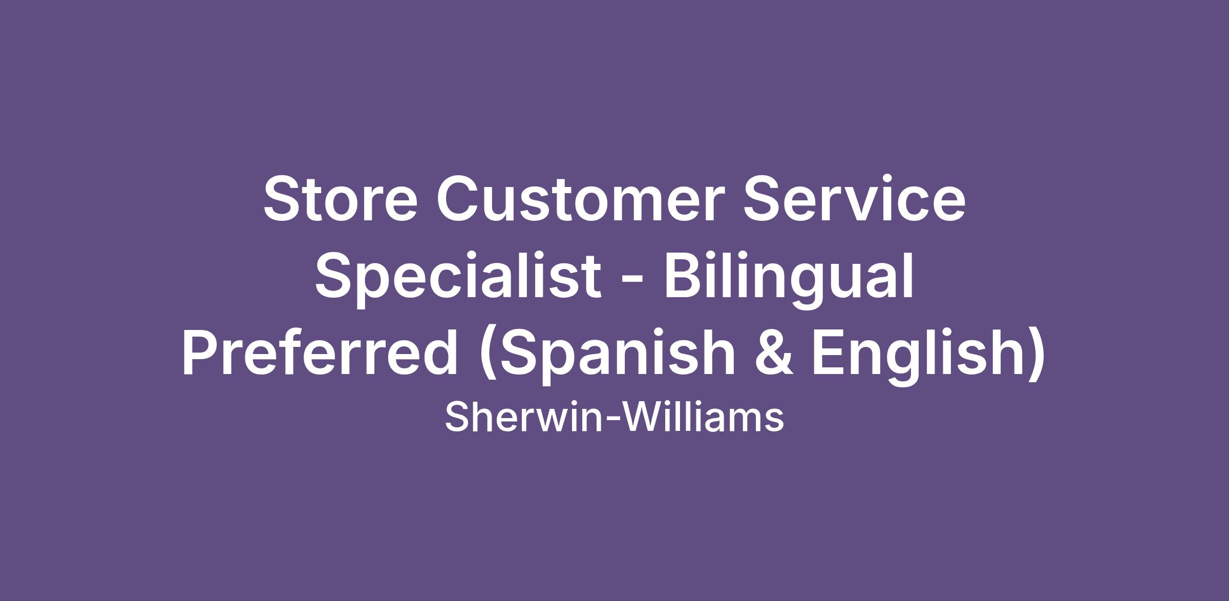 Store Customer Service Specialist - Bilingual Preferred (Spanish & English)
