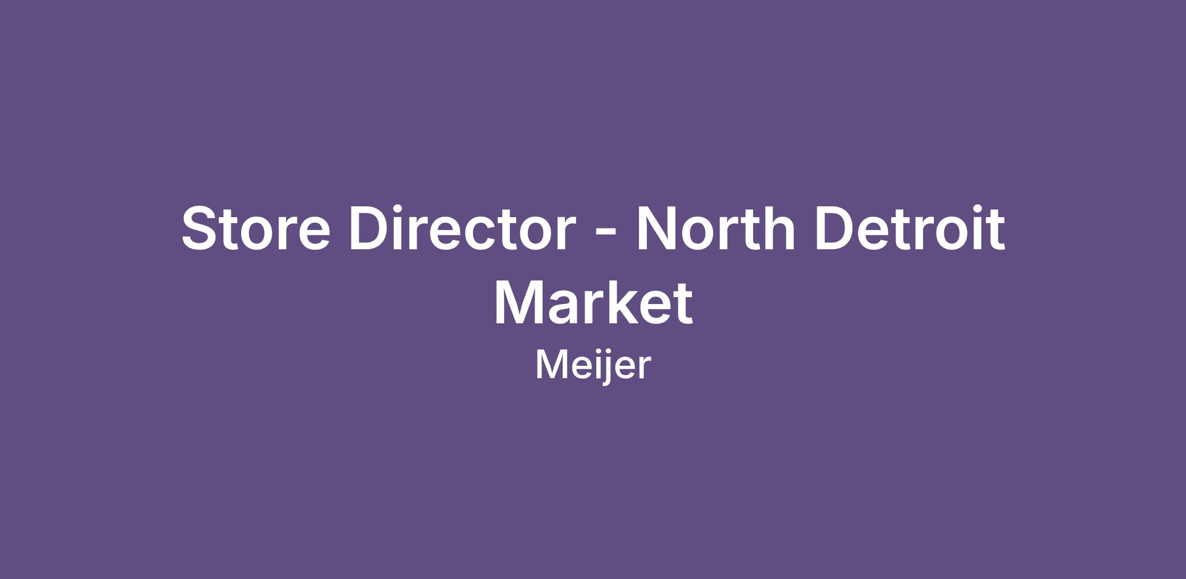 Are you looking to be a part of a growing organization? Do you have a passion for developing future leaders? Then consider an opportunity to be a Store Director at Meijer in the North Detroit Market to include the following locations: