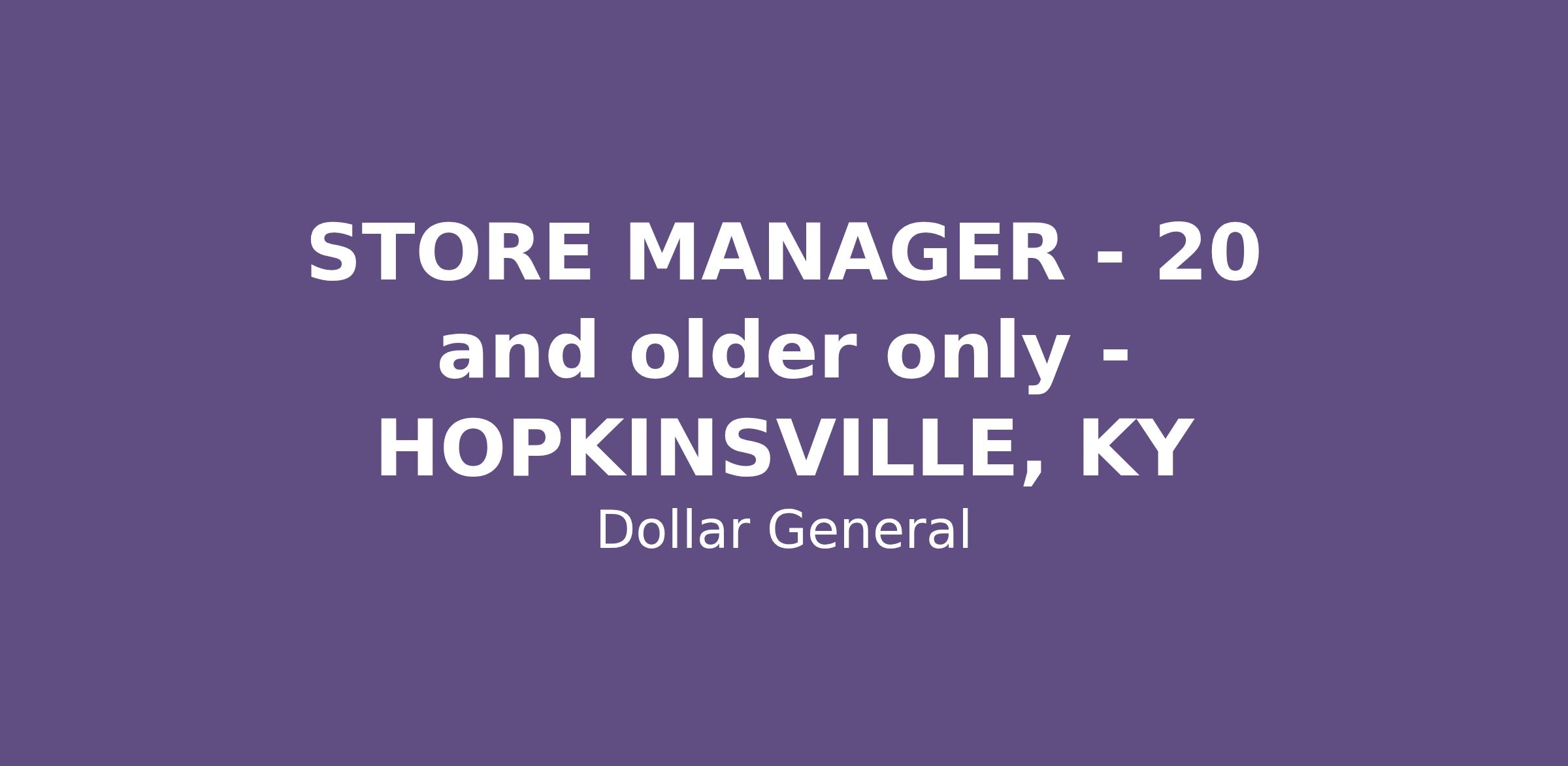 STORE MANAGER - 20 and older only - HOPKINSVILLE, KY