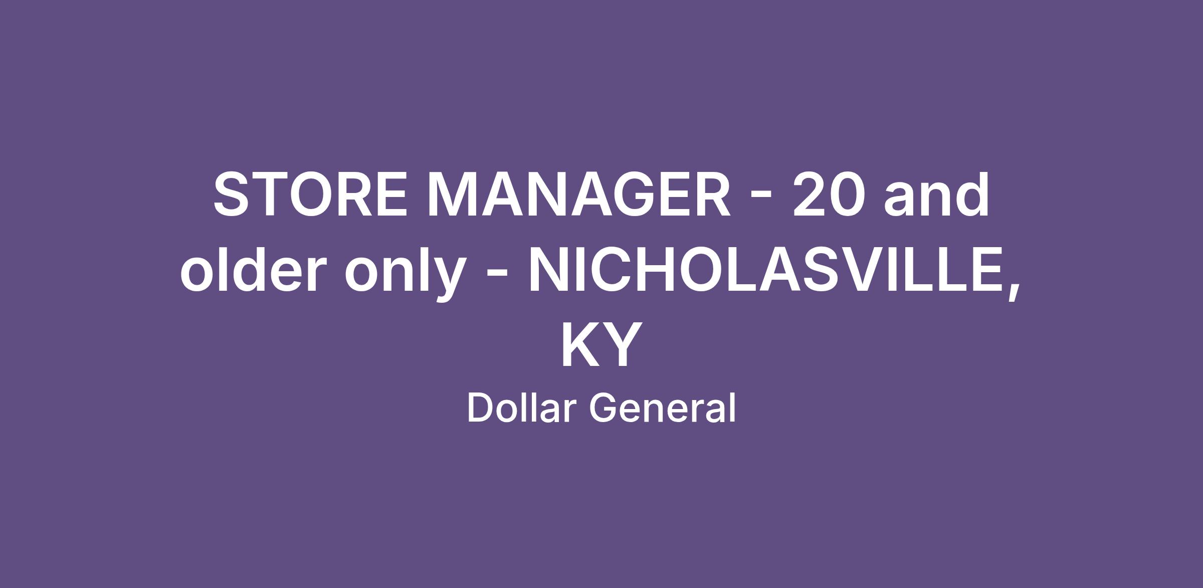 STORE MANAGER - 20 and older only - NICHOLASVILLE, KY