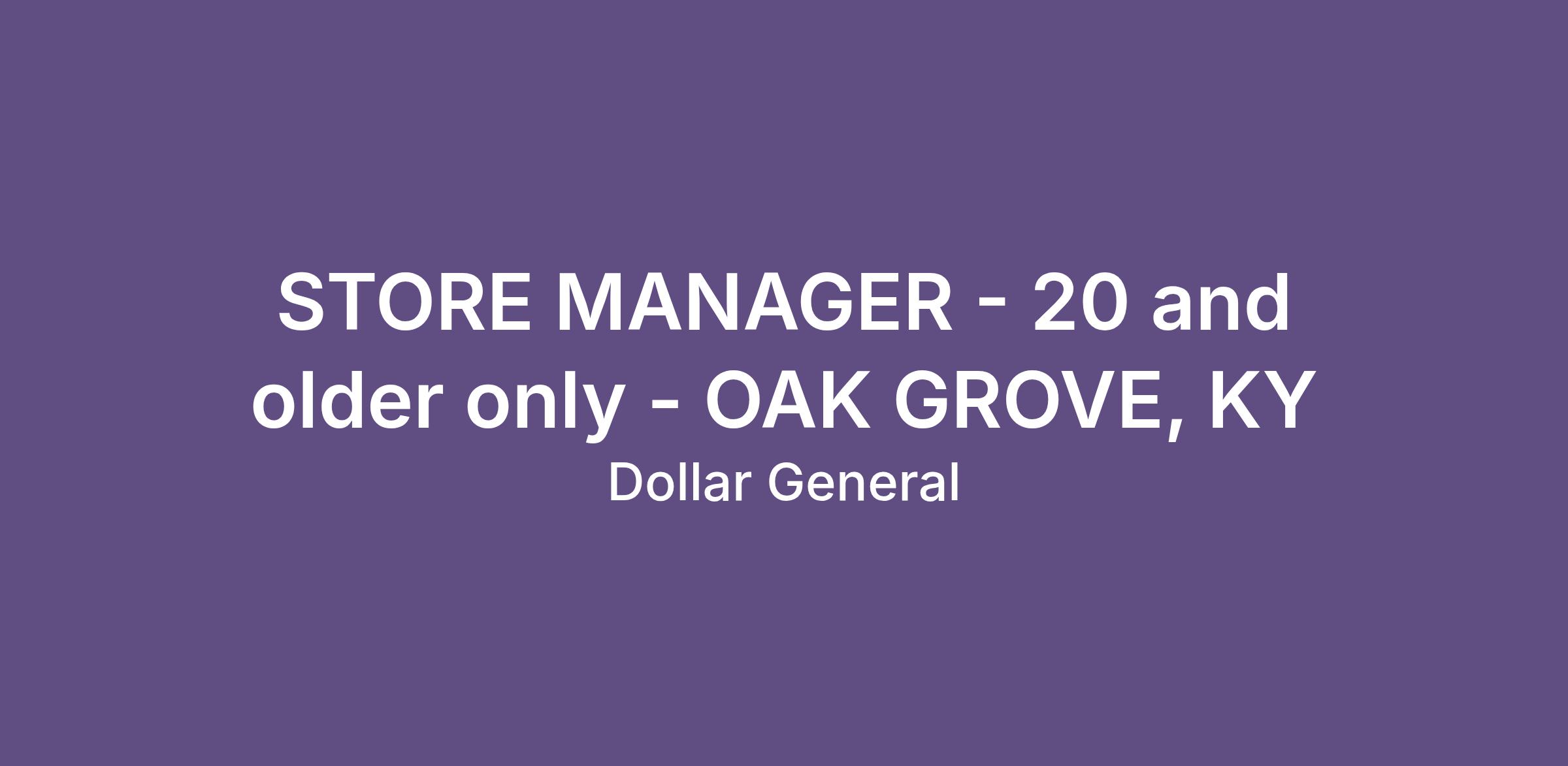 STORE MANAGER - 20 and older only - OAK GROVE, KY