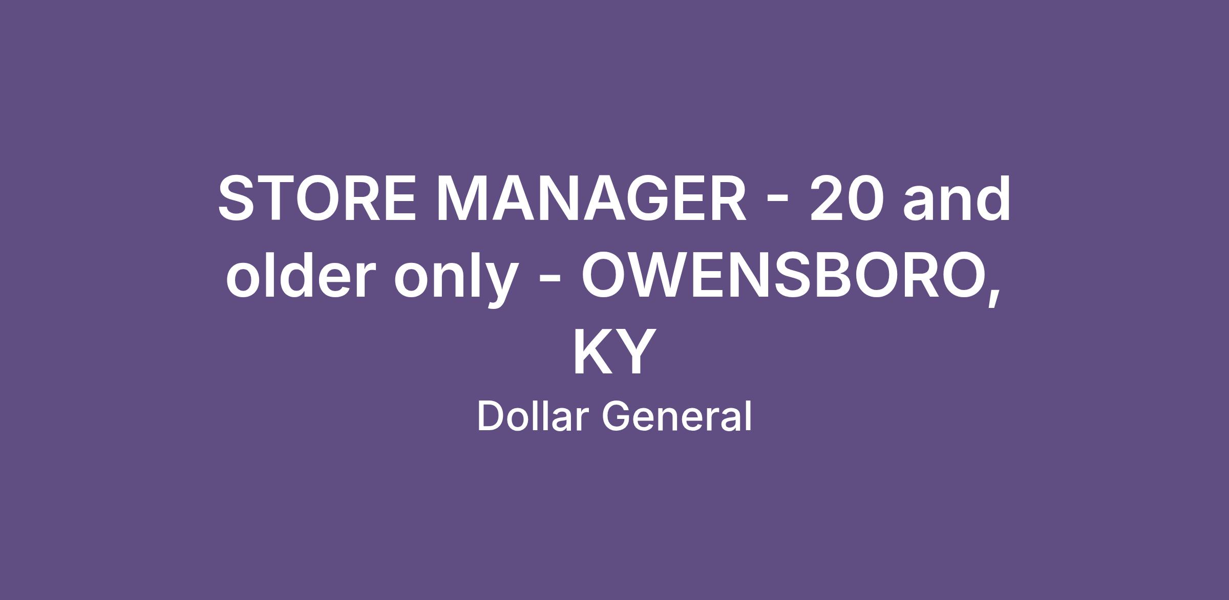 STORE MANAGER - 20 and older only - OWENSBORO, KY