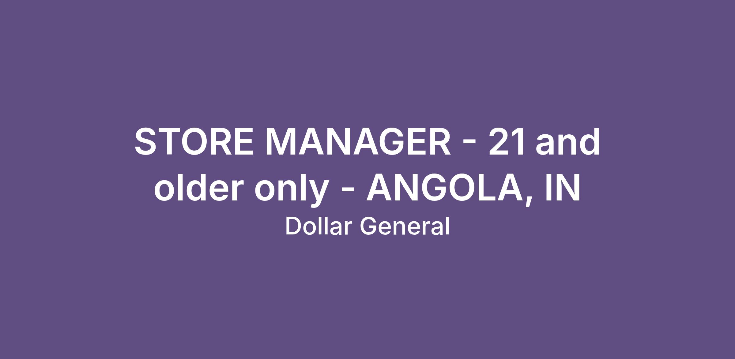 STORE MANAGER - 21 and older only - ANGOLA, IN