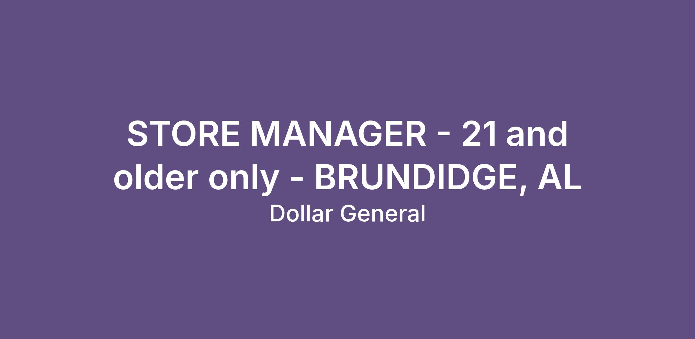 STORE MANAGER - 21 and older only - BRUNDIDGE, AL