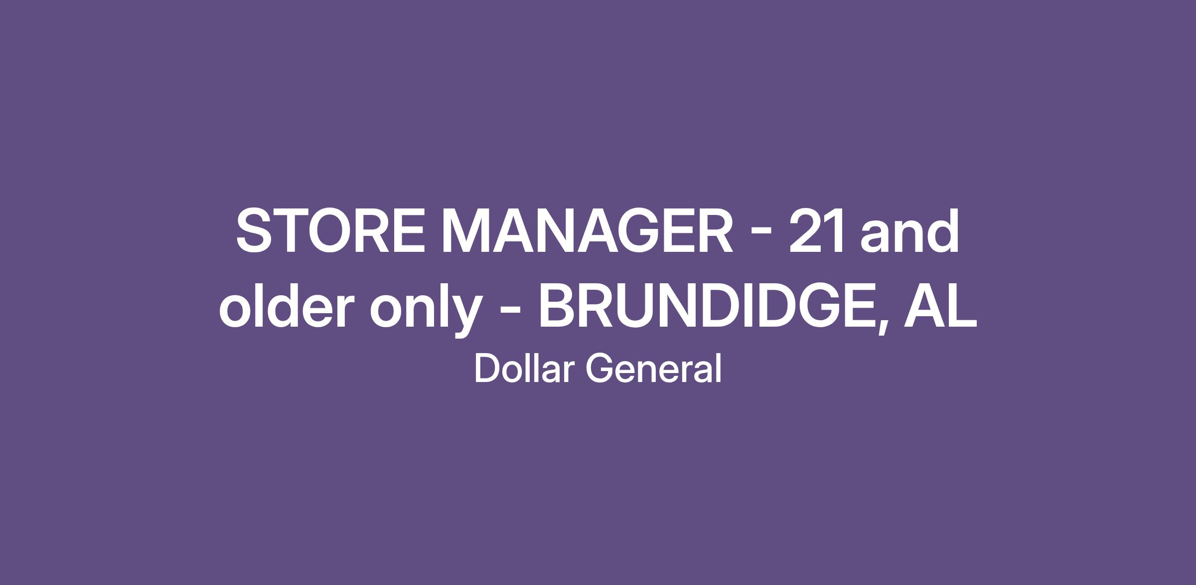 STORE MANAGER - 21 and older only - BRUNDIDGE, AL