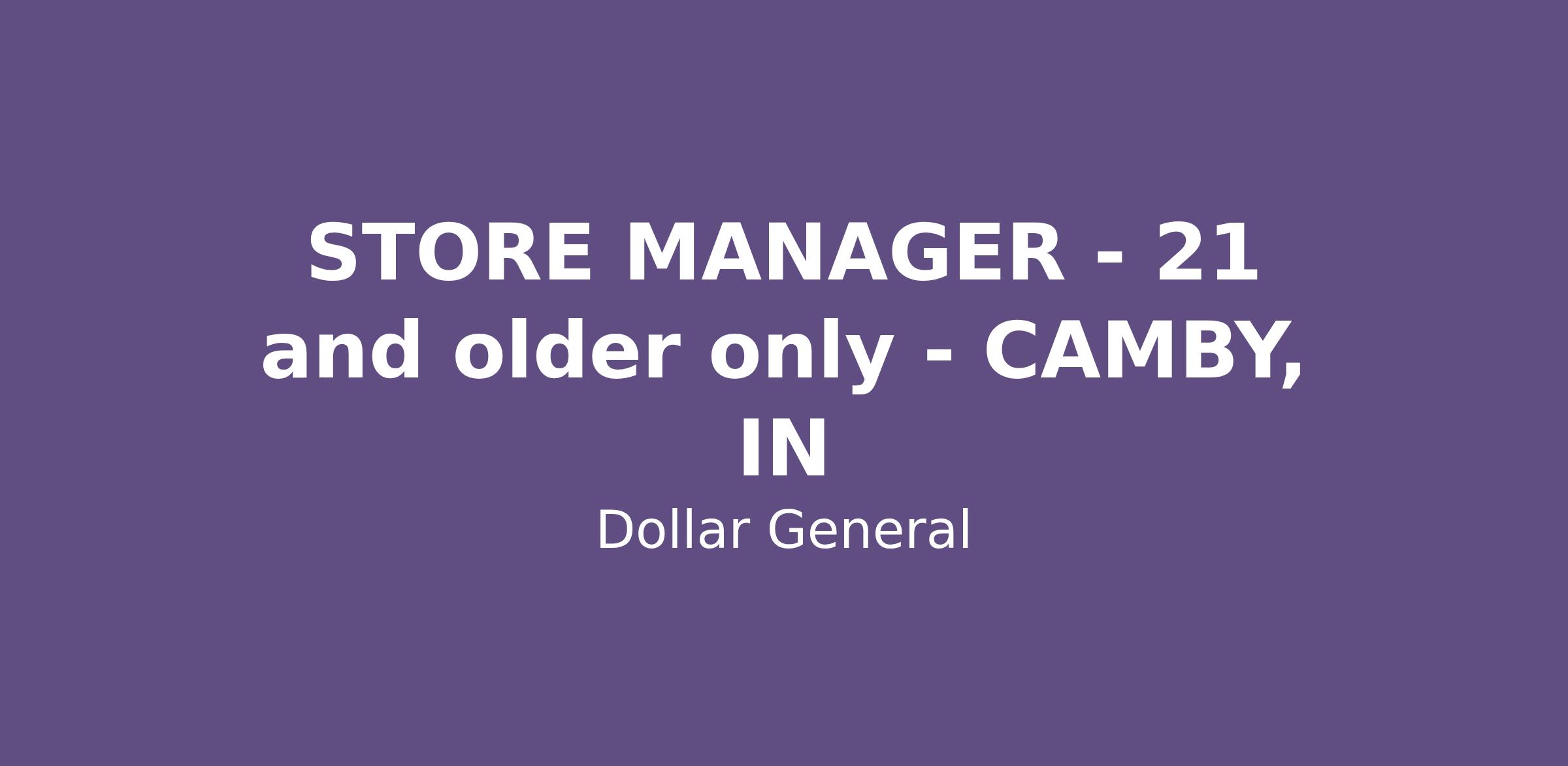 STORE MANAGER - 21 and older only - CAMBY, IN
