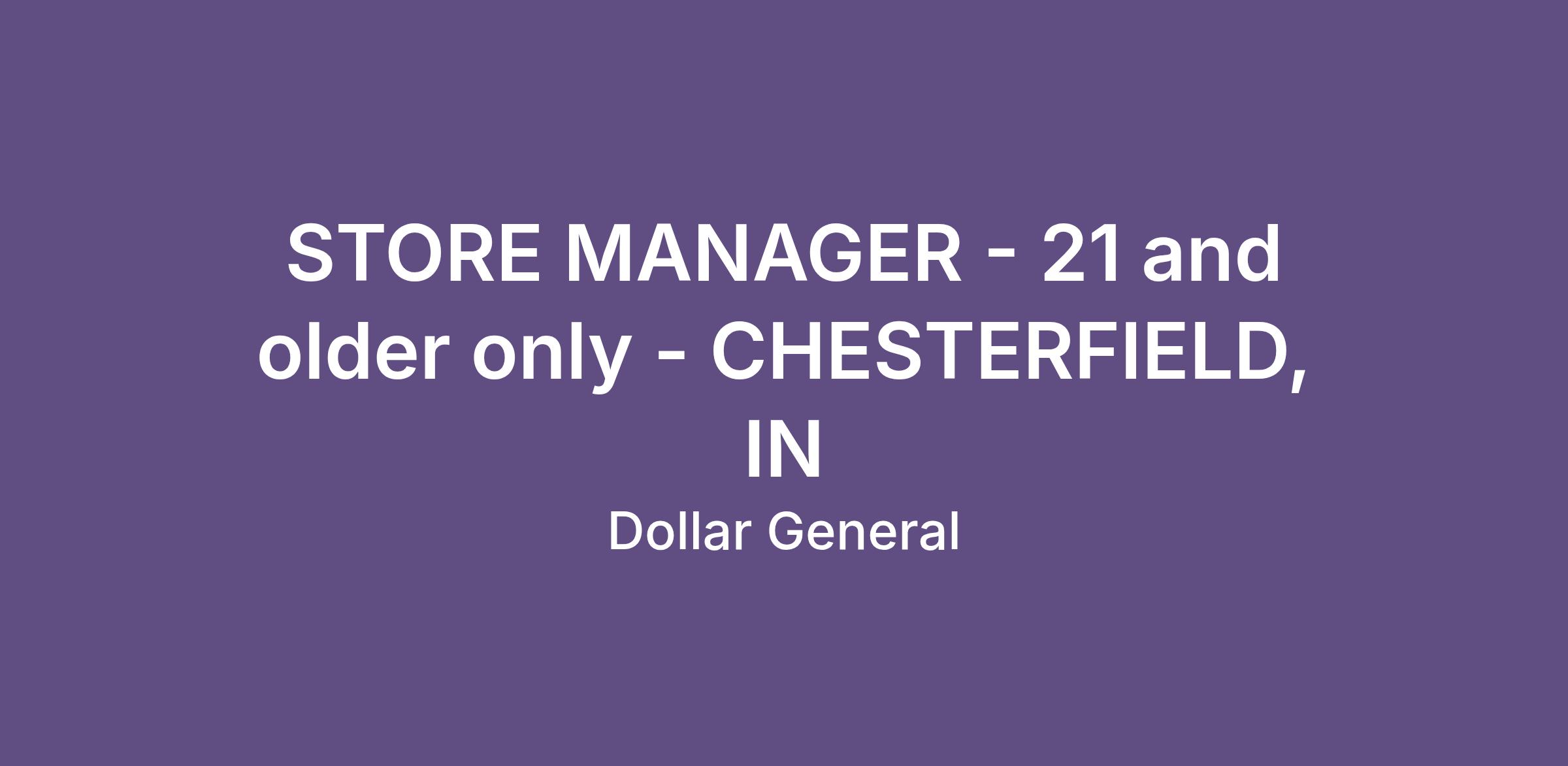 STORE MANAGER - 21 and older only - CHESTERFIELD, IN