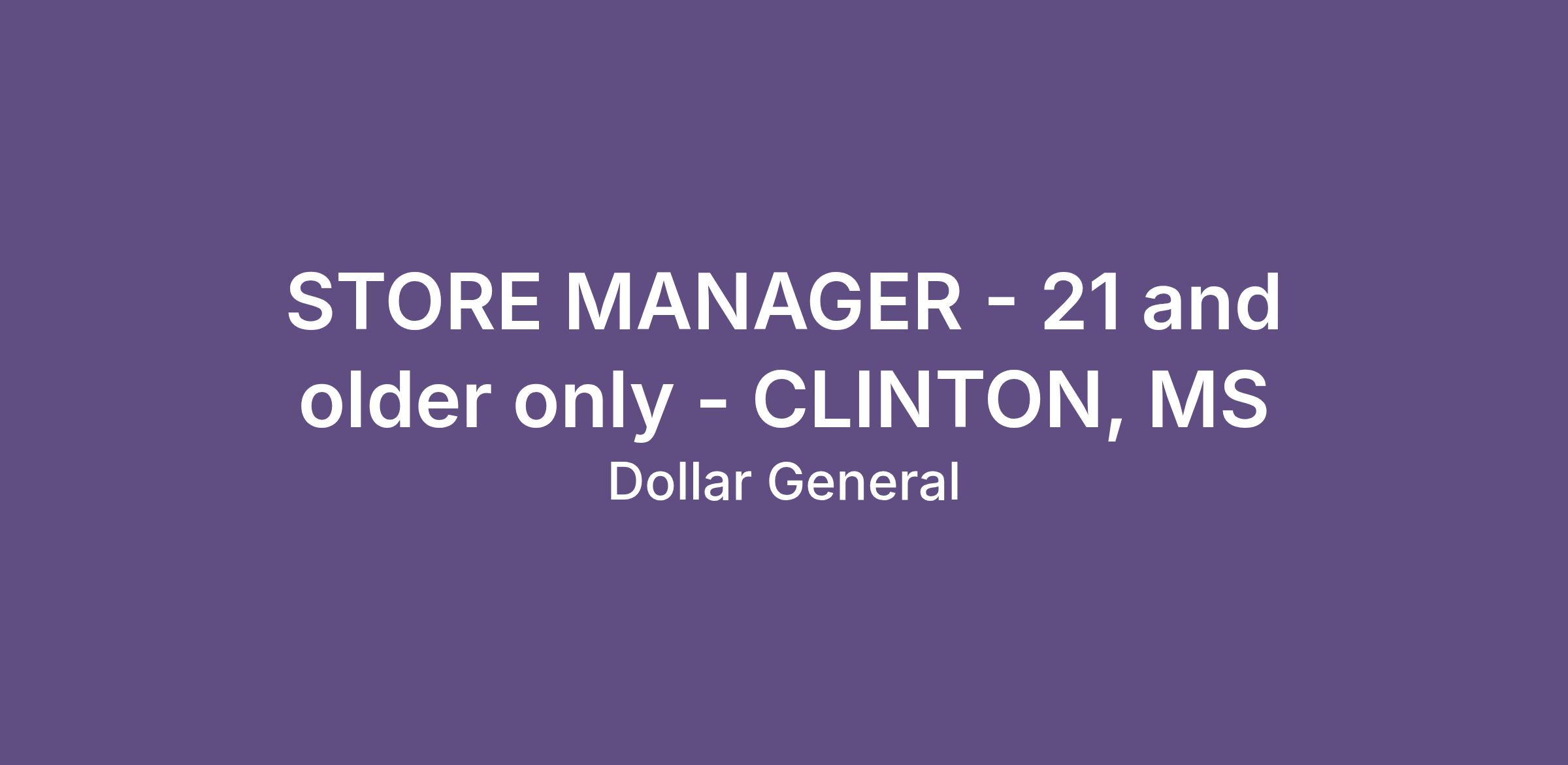 STORE MANAGER - 21 and older only - CLINTON, MS