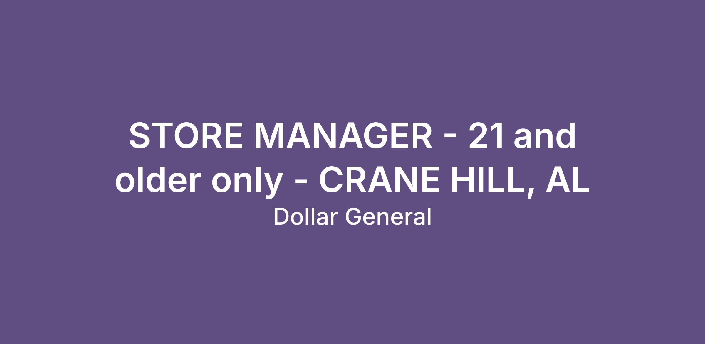 STORE MANAGER - 21 and older only - CRANE HILL, AL