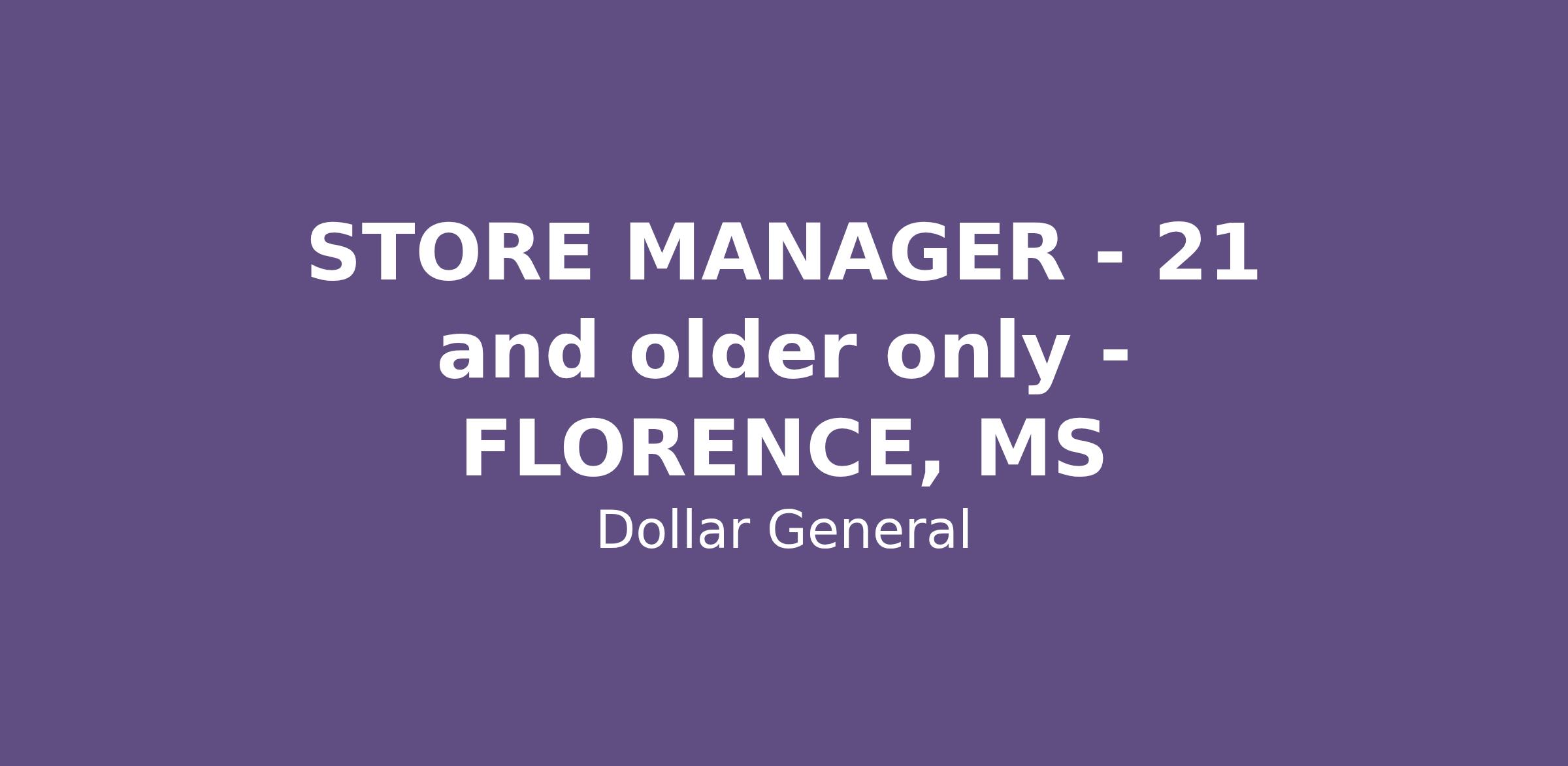 STORE MANAGER - 21 and older only - FLORENCE, MS