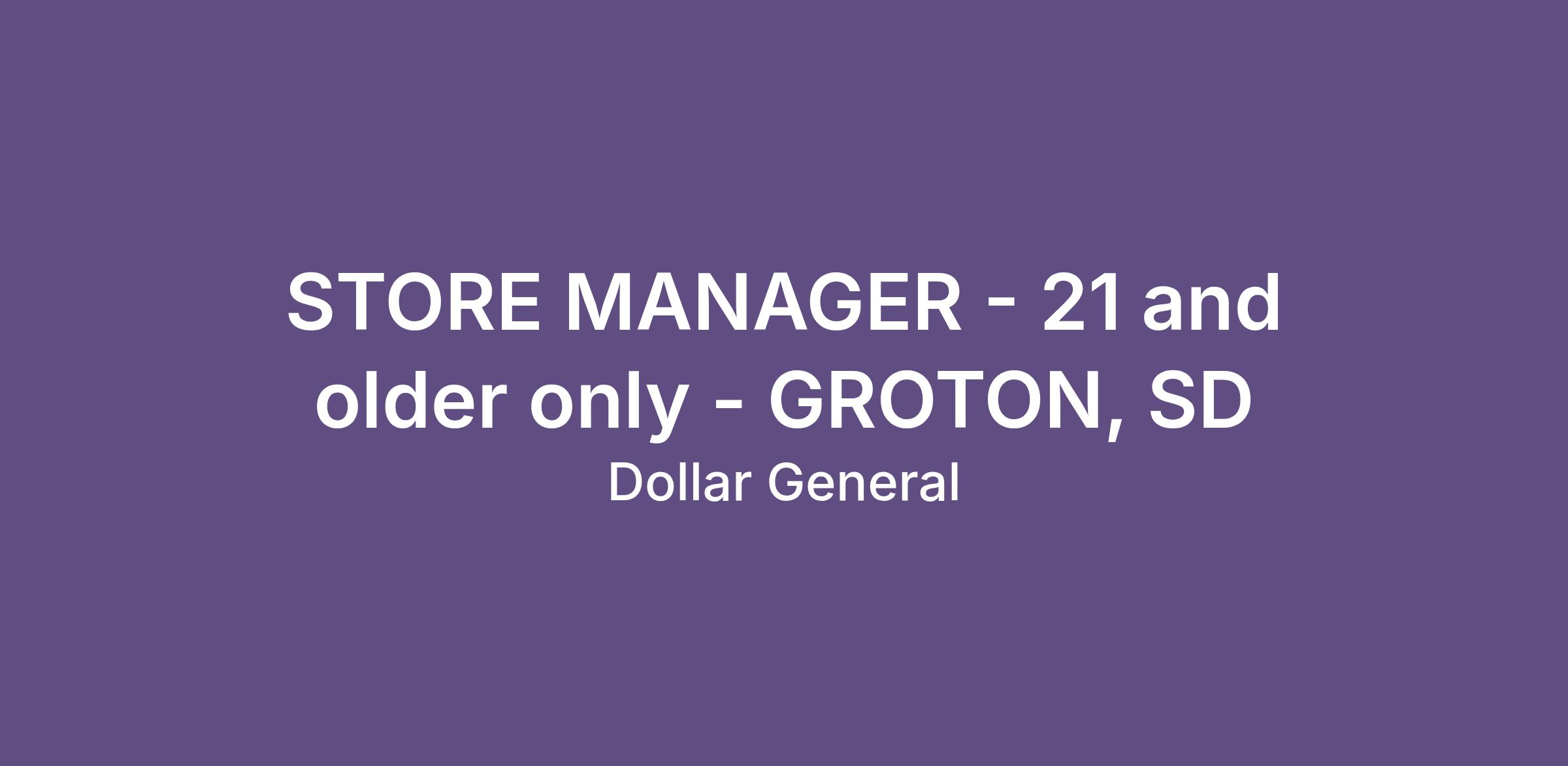 STORE MANAGER - 21 and older only - GROTON, SD