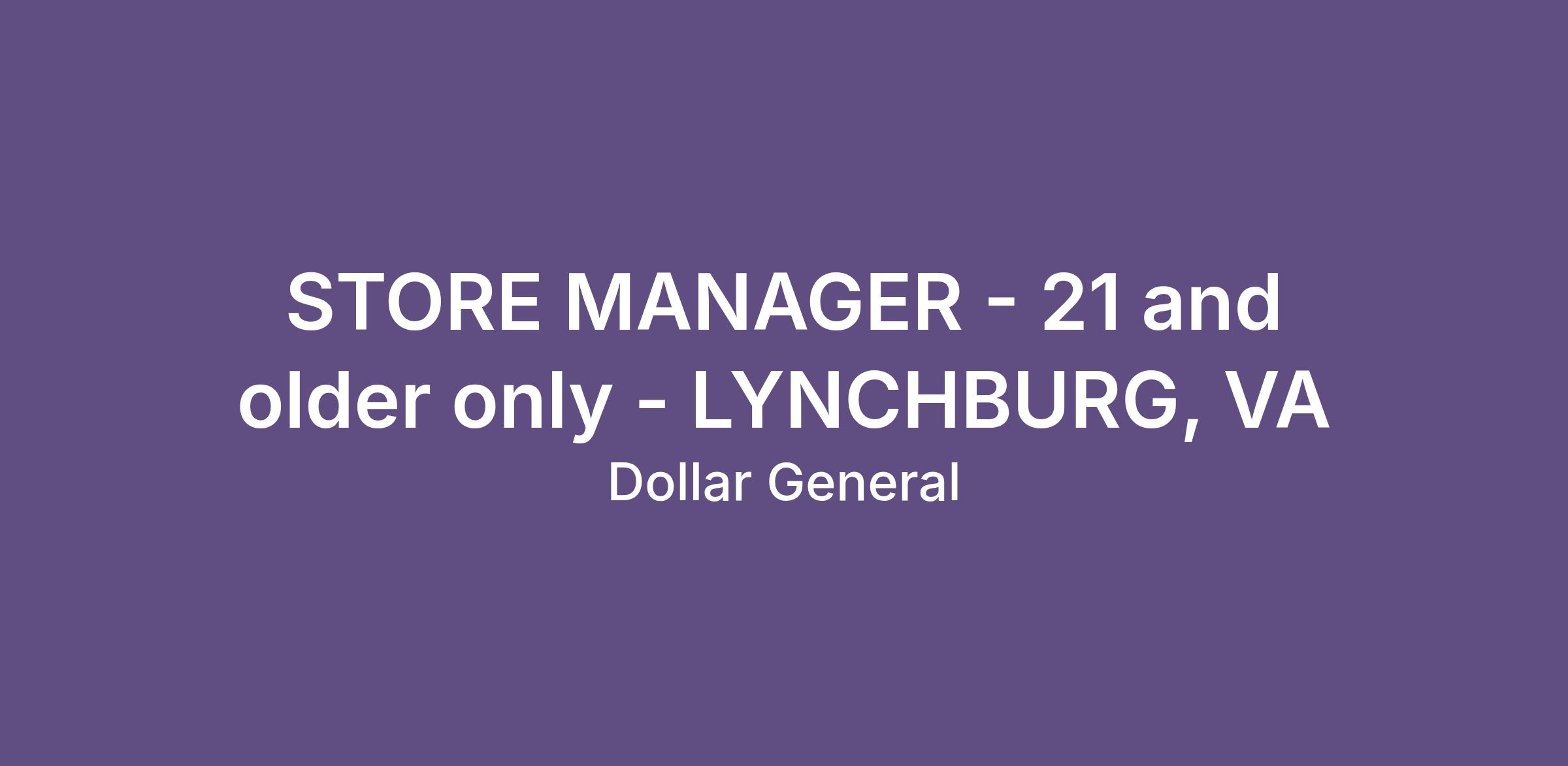STORE MANAGER - 21 and older only - LYNCHBURG, VA