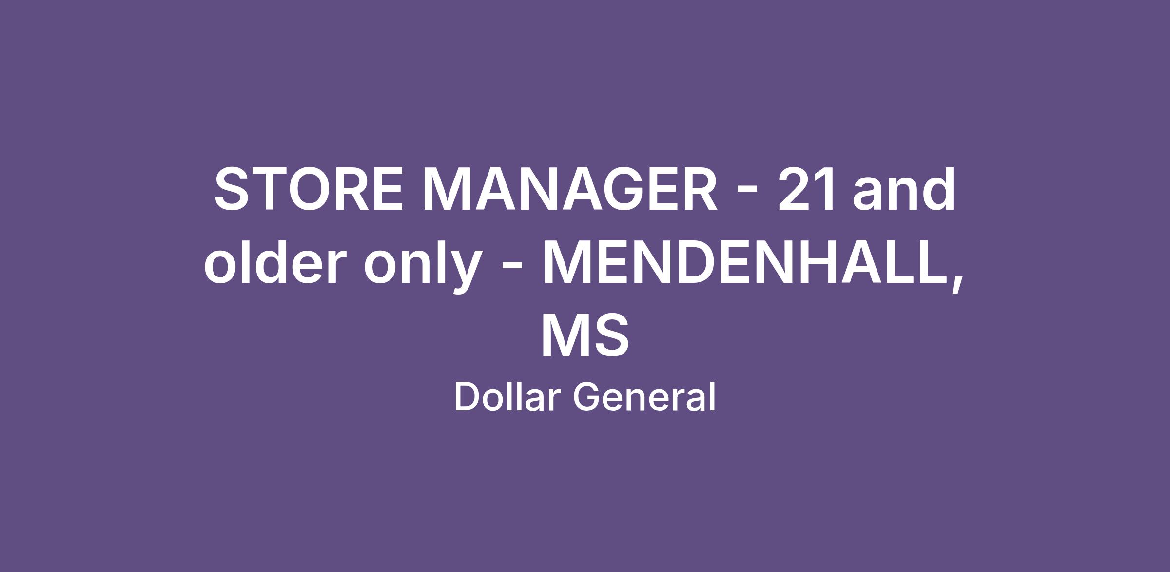 STORE MANAGER - 21 and older only - MENDENHALL, MS