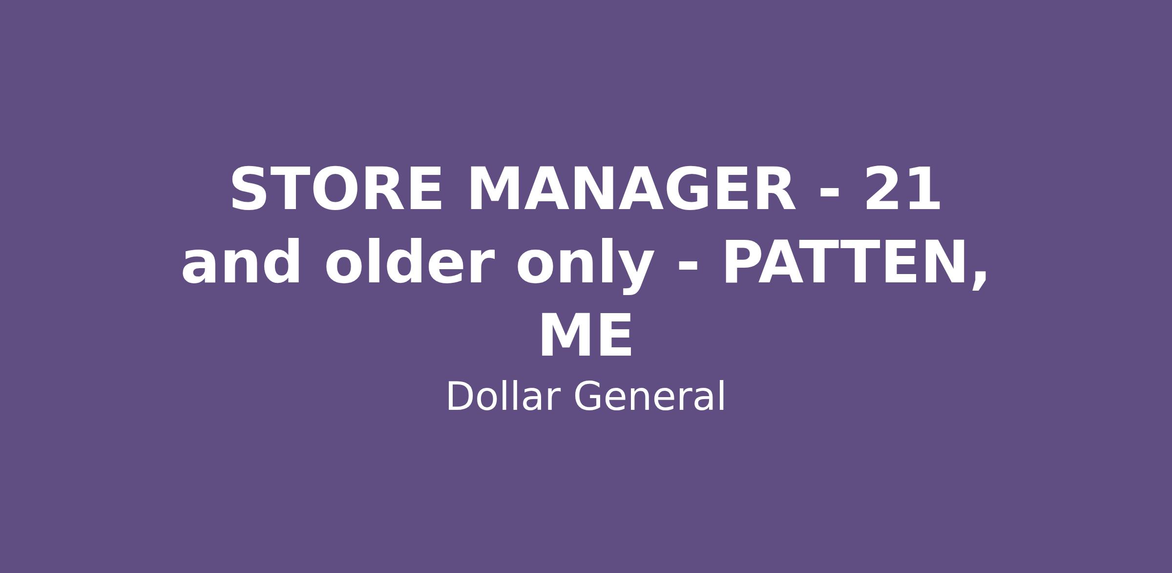 STORE MANAGER - 21 and older only - PATTEN, ME