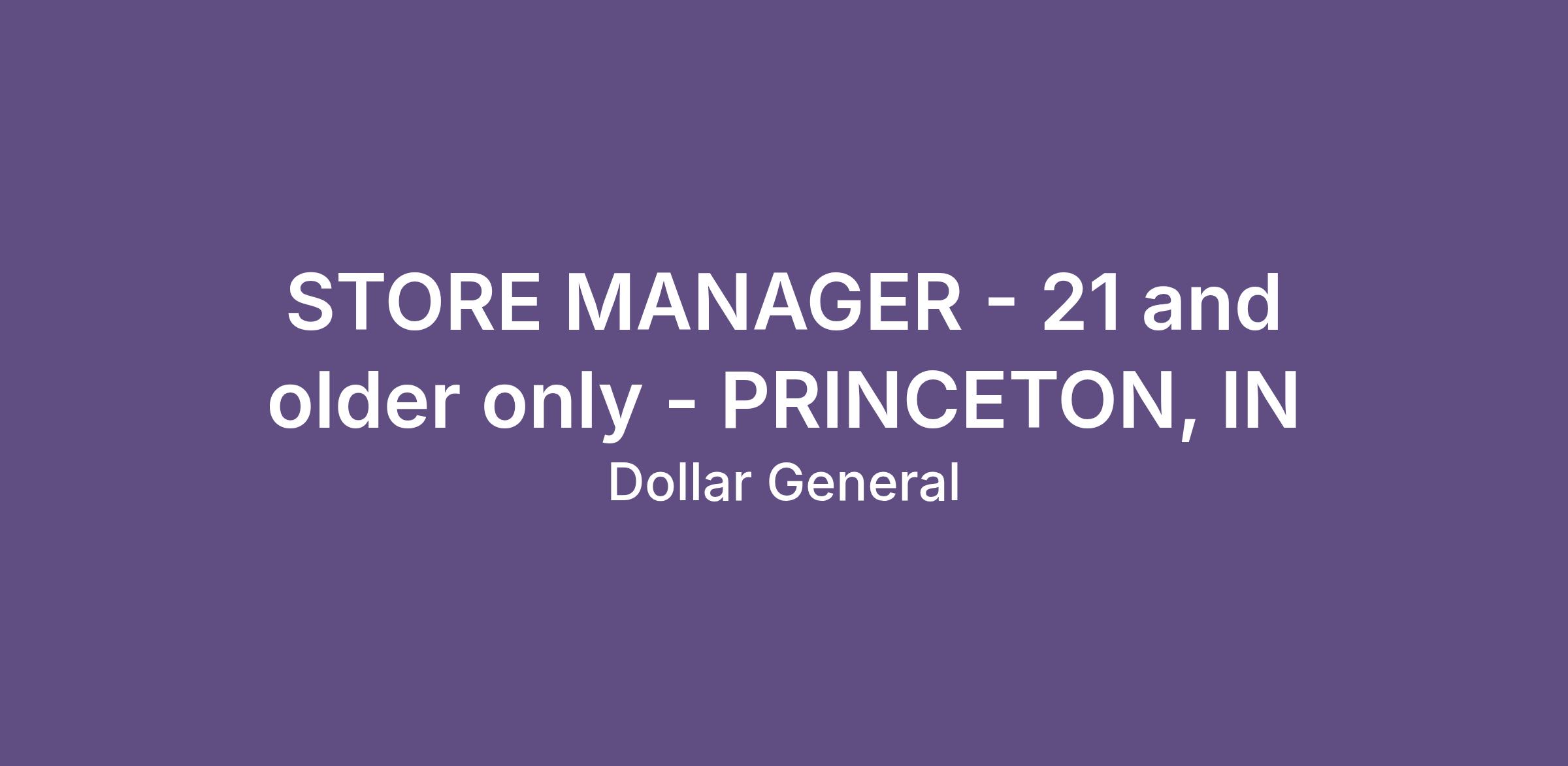 STORE MANAGER - 21 and older only - PRINCETON, IN