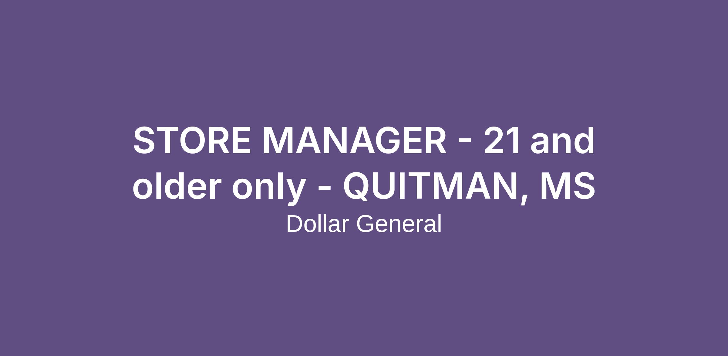 STORE MANAGER - 21 and older only - QUITMAN, MS