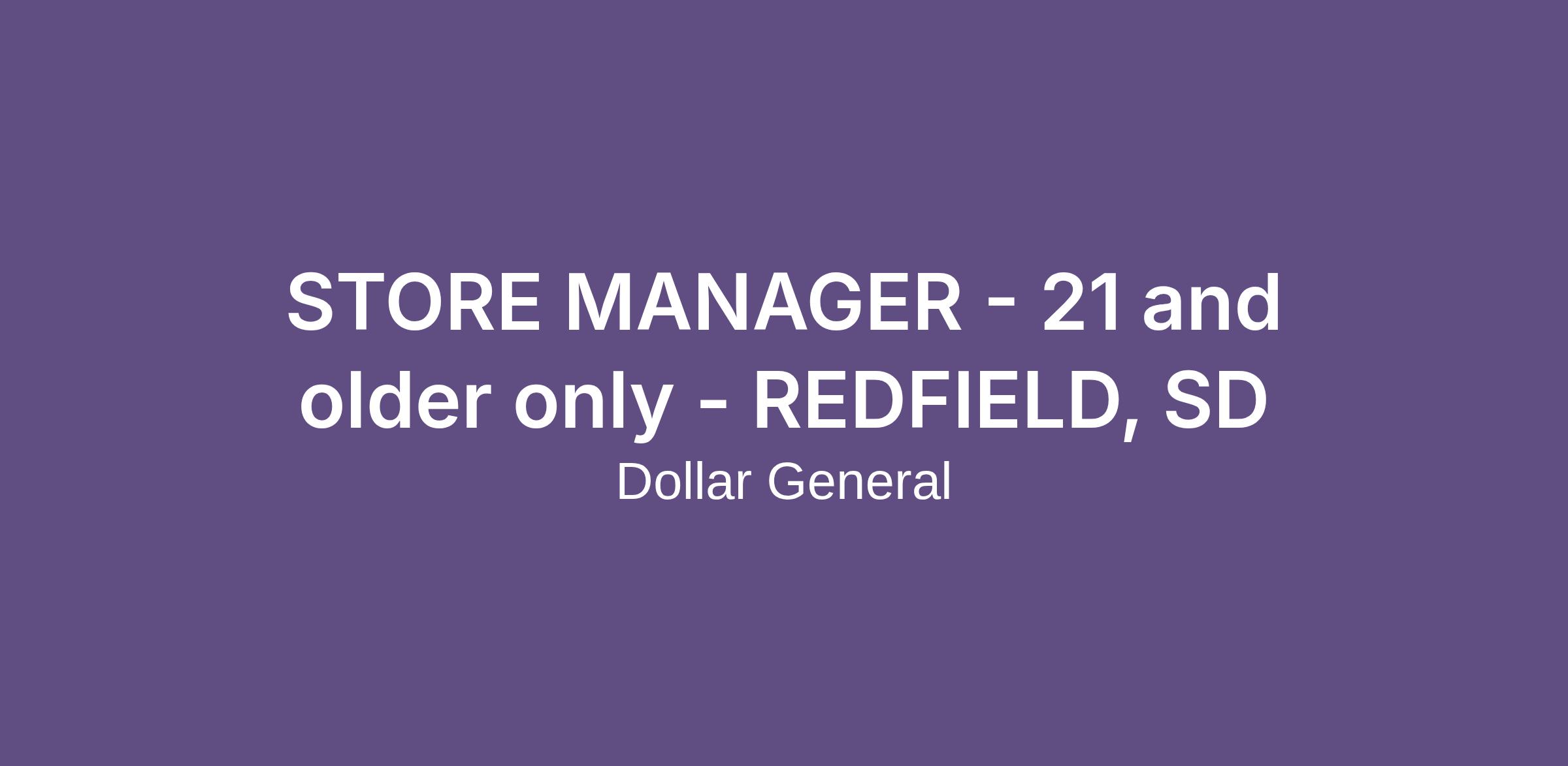 STORE MANAGER - 21 and older only - REDFIELD, SD