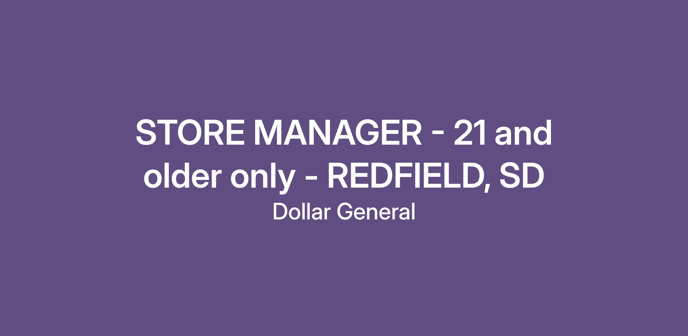STORE MANAGER - 21 and older only - REDFIELD, SD