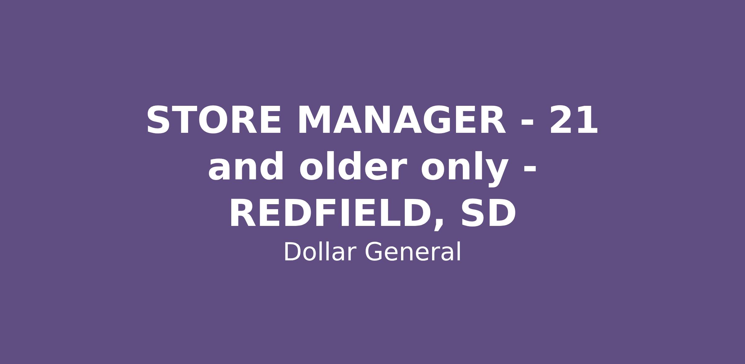 STORE MANAGER - 21 and older only - REDFIELD, SD