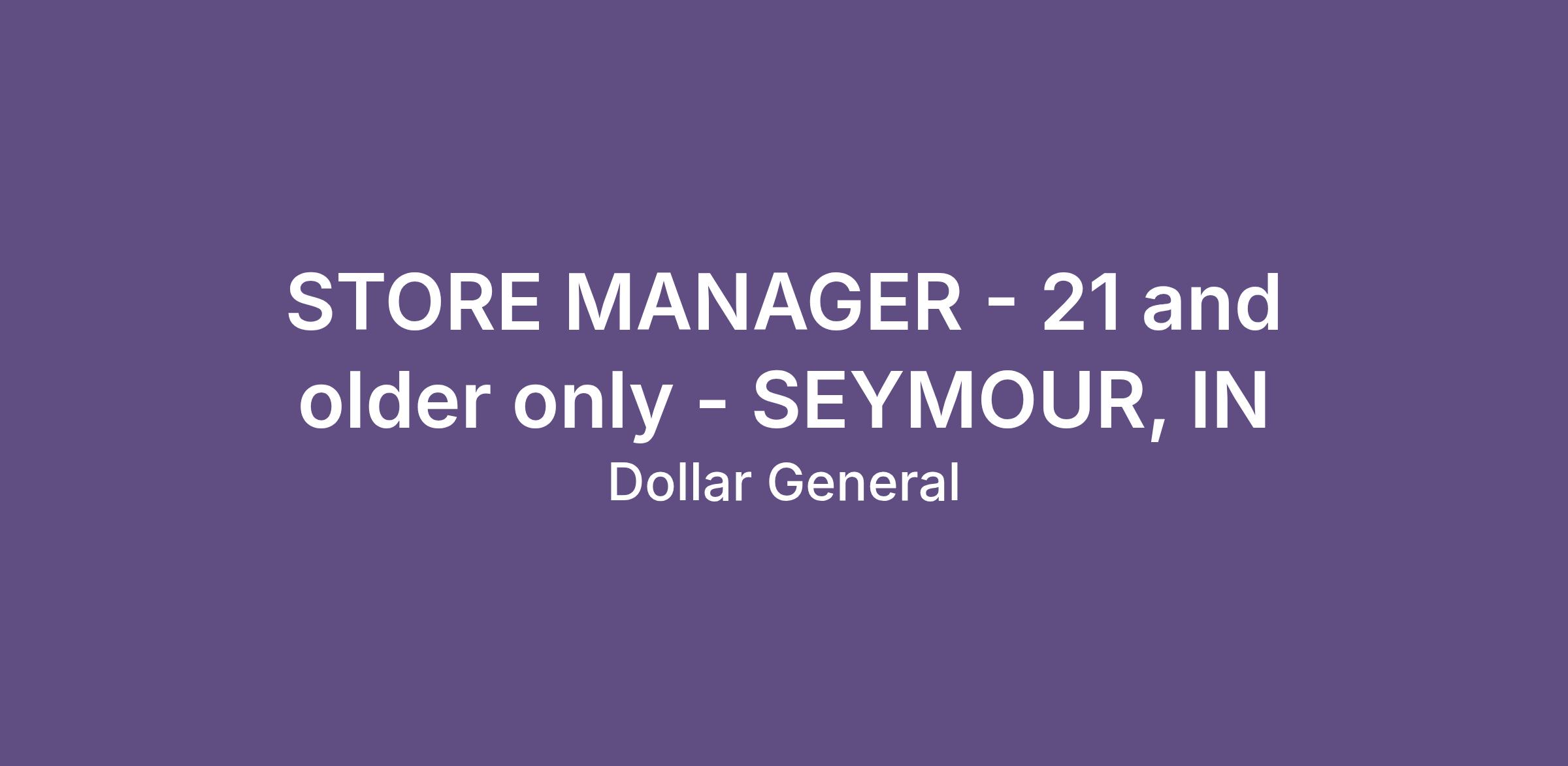 STORE MANAGER - 21 and older only - SEYMOUR, IN