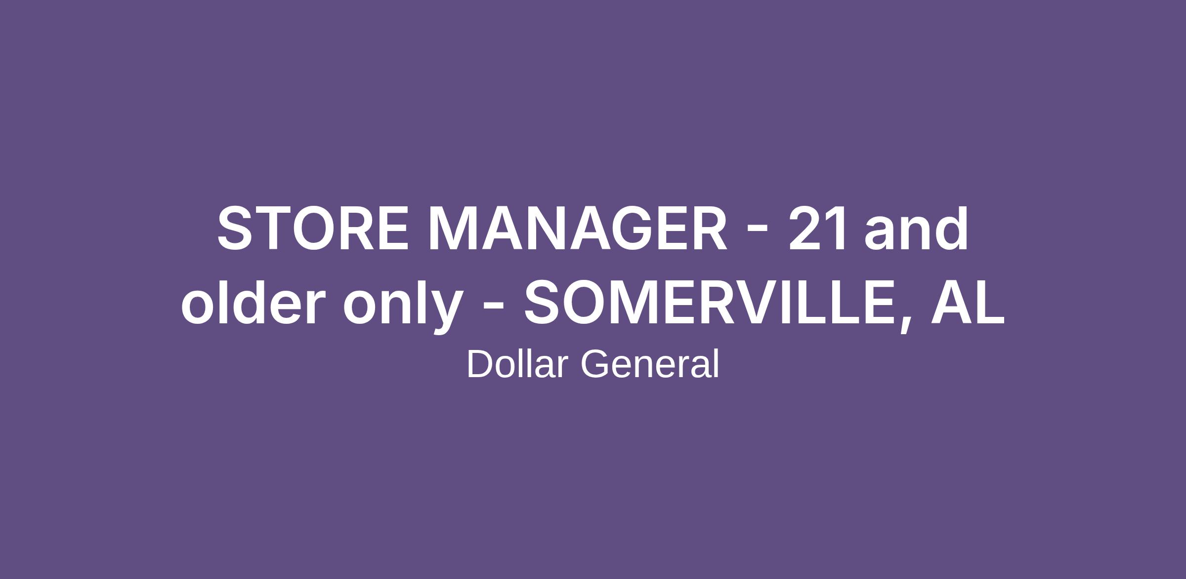 STORE MANAGER - 21 and older only - SOMERVILLE, AL