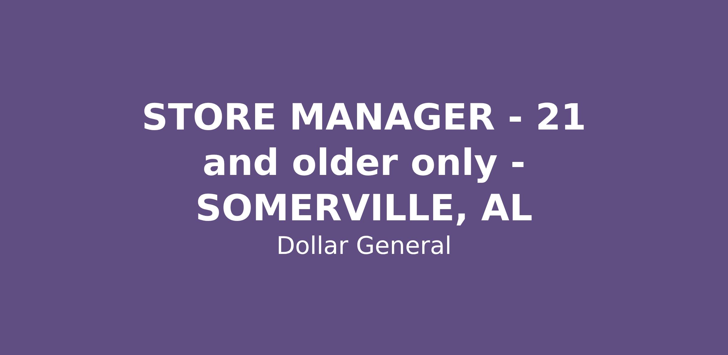 STORE MANAGER - 21 and older only - SOMERVILLE, AL