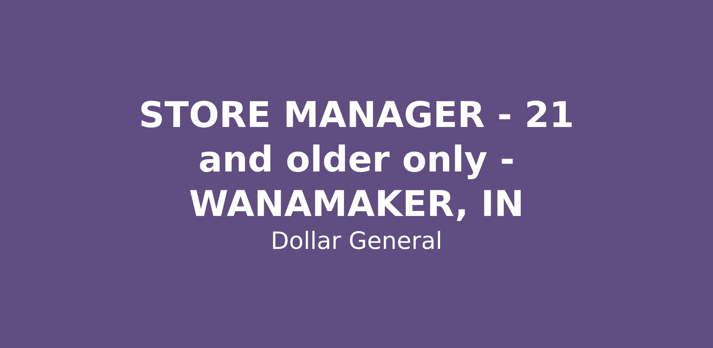 STORE MANAGER - 21 and older only - WANAMAKER, IN