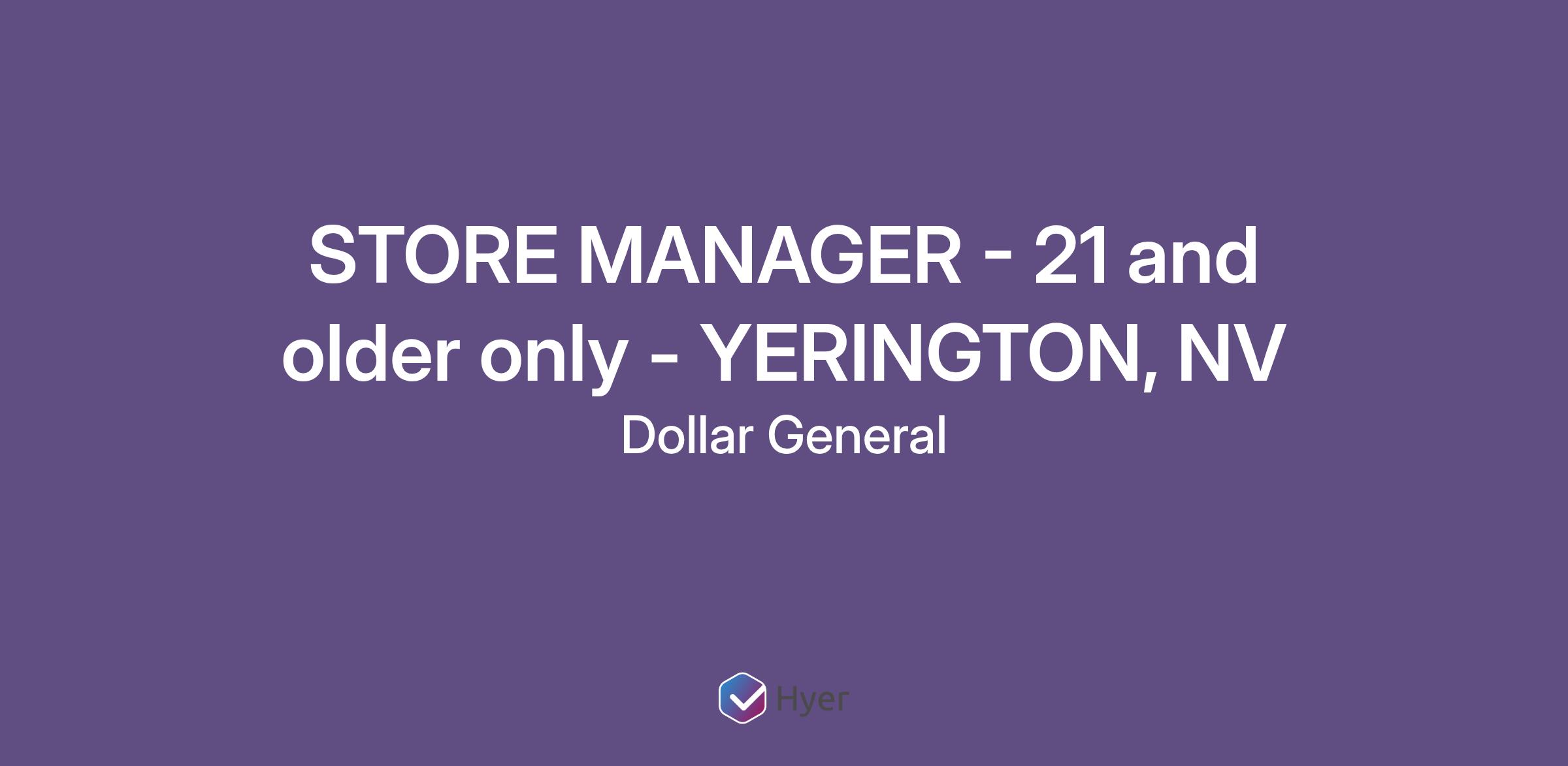 STORE MANAGER - 21 and older only - YERINGTON, NV