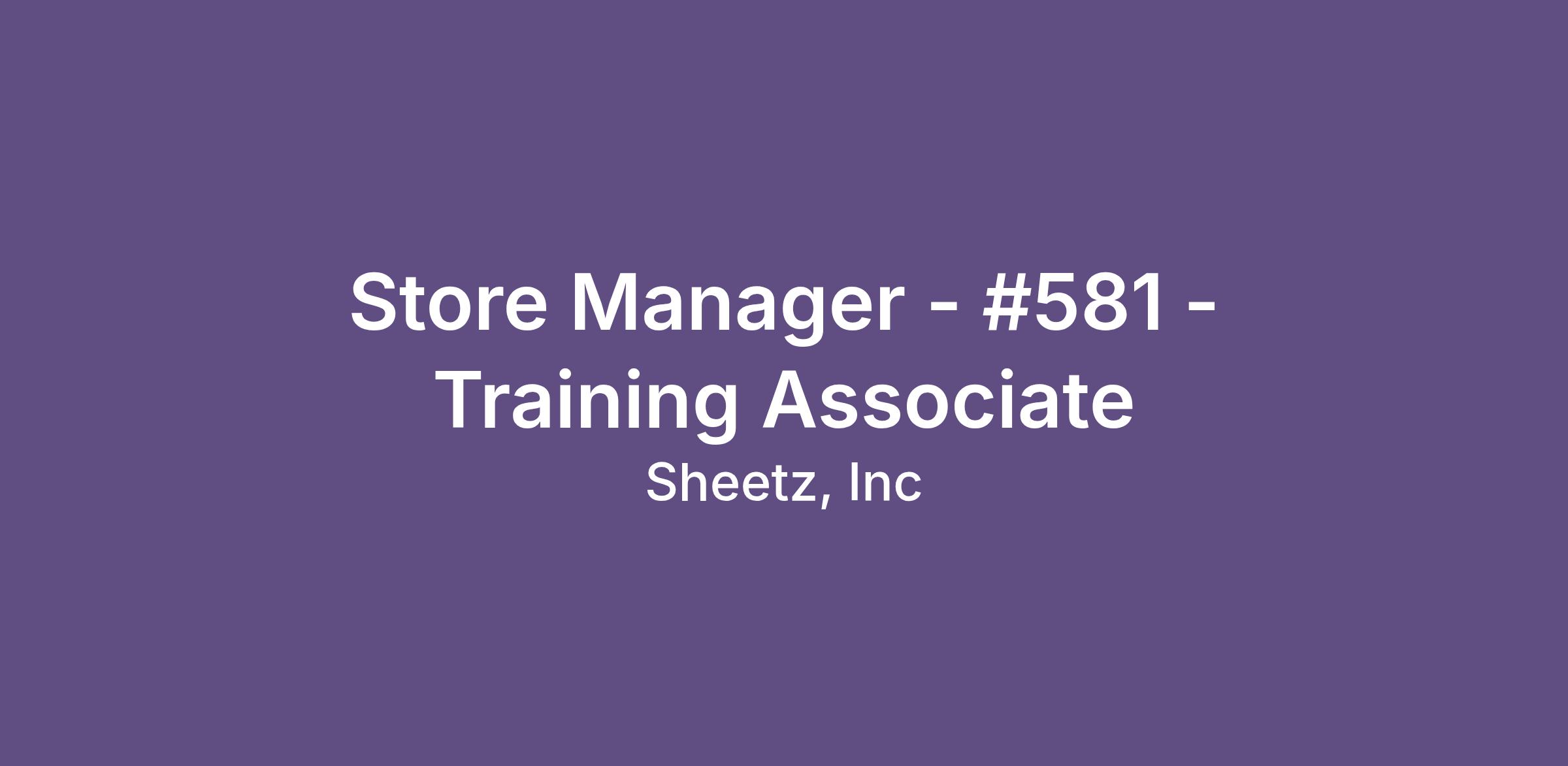 Store Manager - #581 - Training Associate