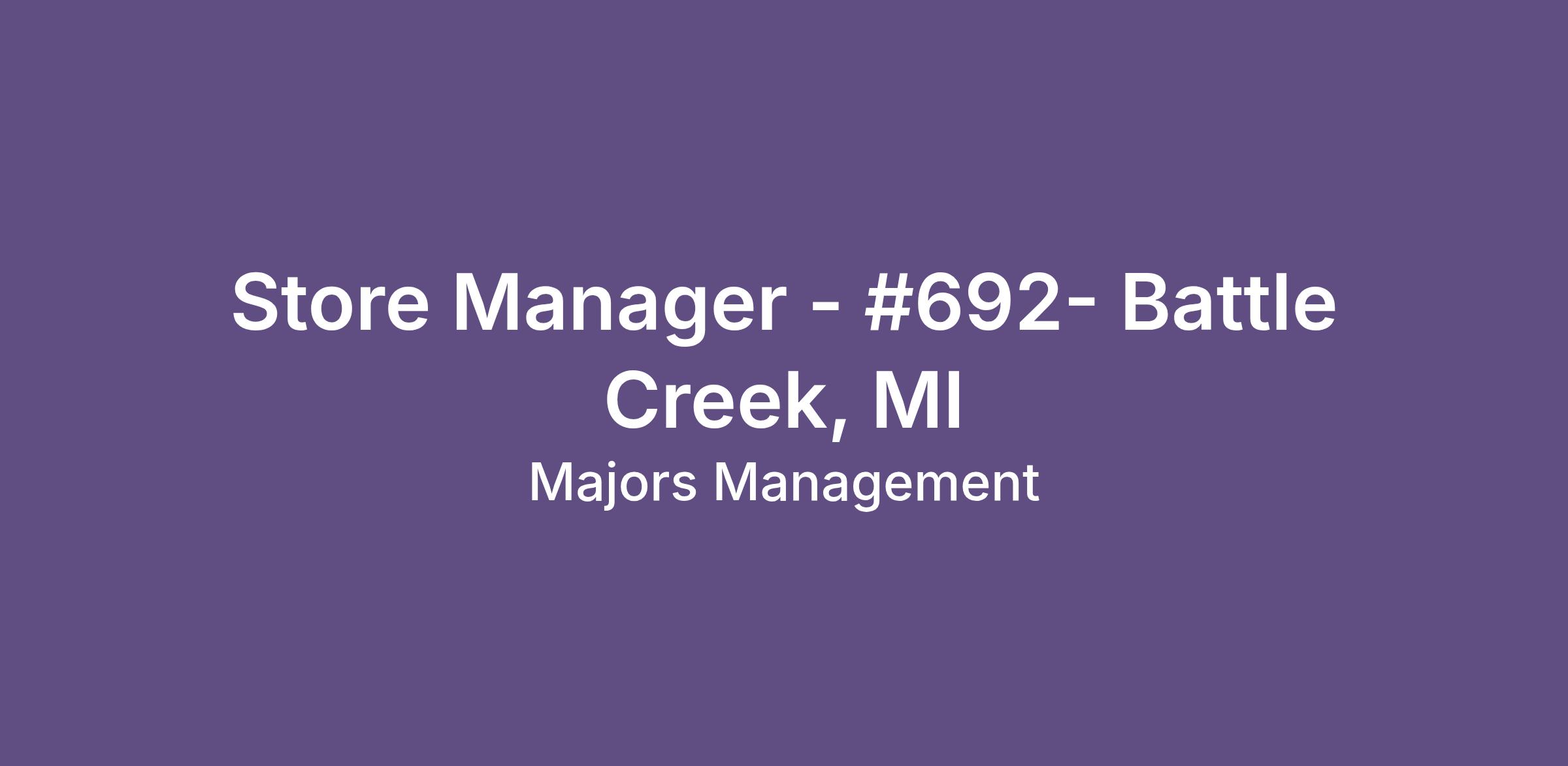 Store Manager - #692- Battle Creek, MI