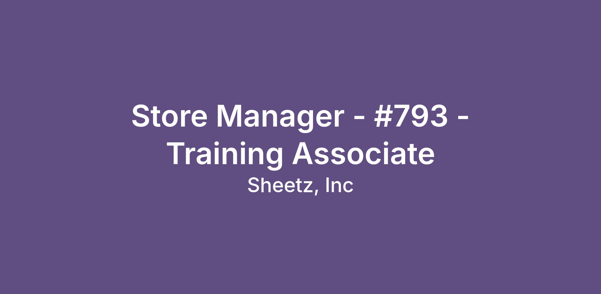 Store Manager - #793 - Training Associate