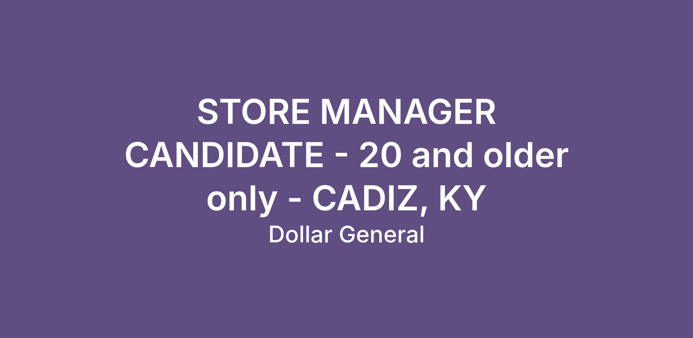STORE MANAGER CANDIDATE - 20 and older only - CADIZ, KY
