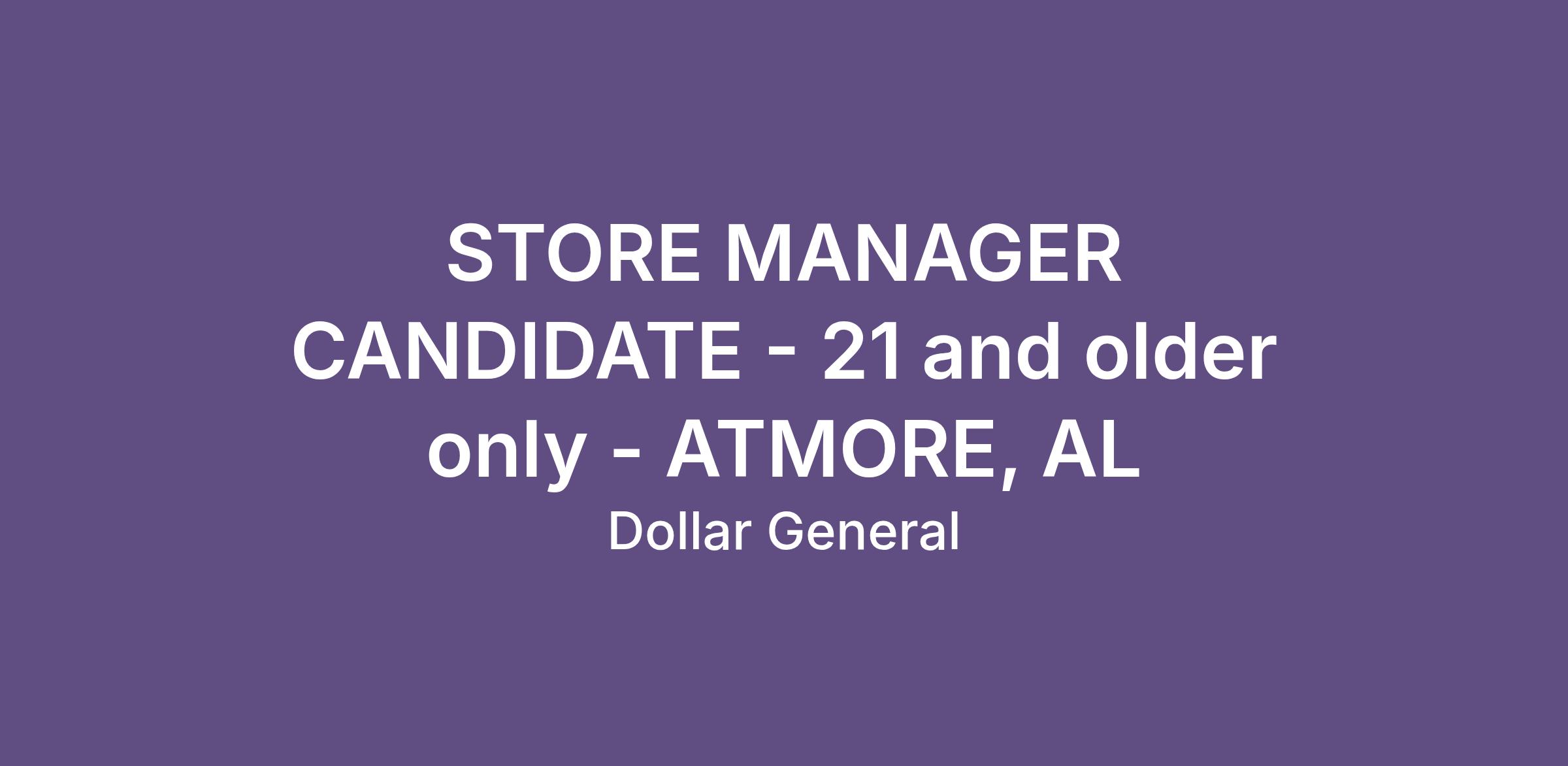 STORE MANAGER CANDIDATE - 21 and older only - ATMORE, AL