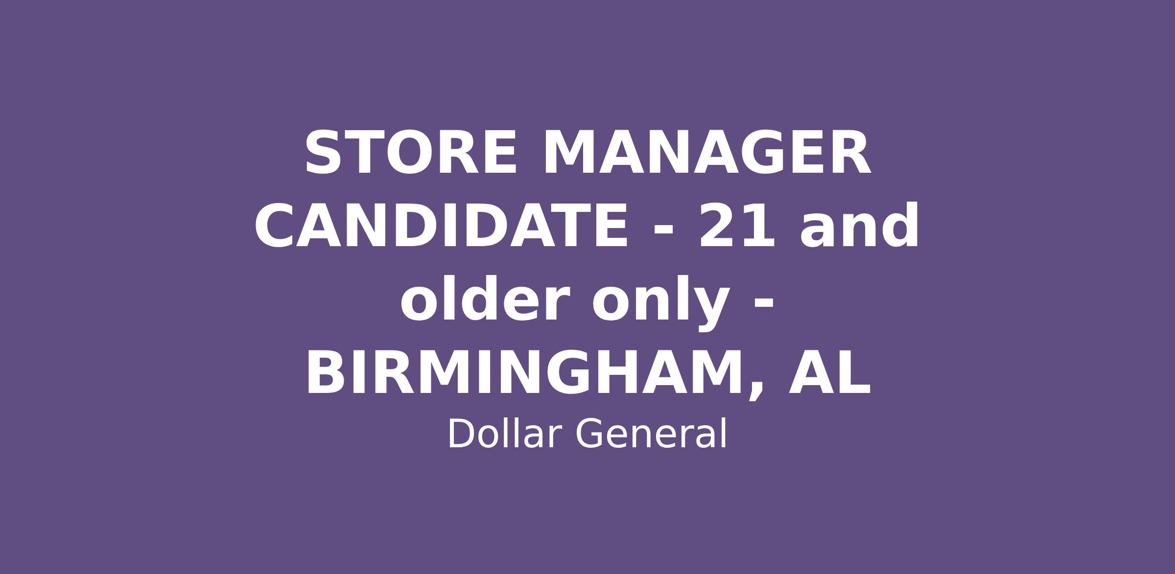 STORE MANAGER CANDIDATE - 21 and older only - BIRMINGHAM, AL