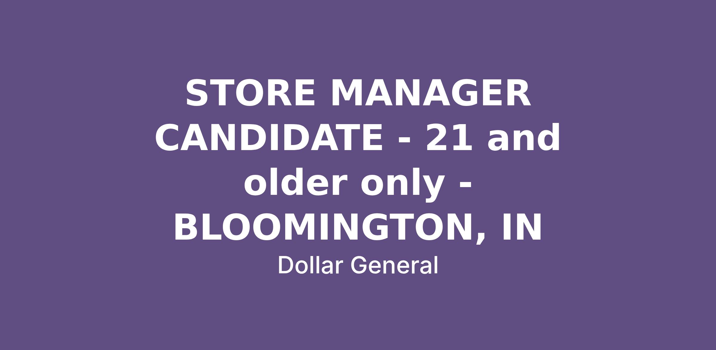 STORE MANAGER CANDIDATE - 21 and older only - BLOOMINGTON, IN