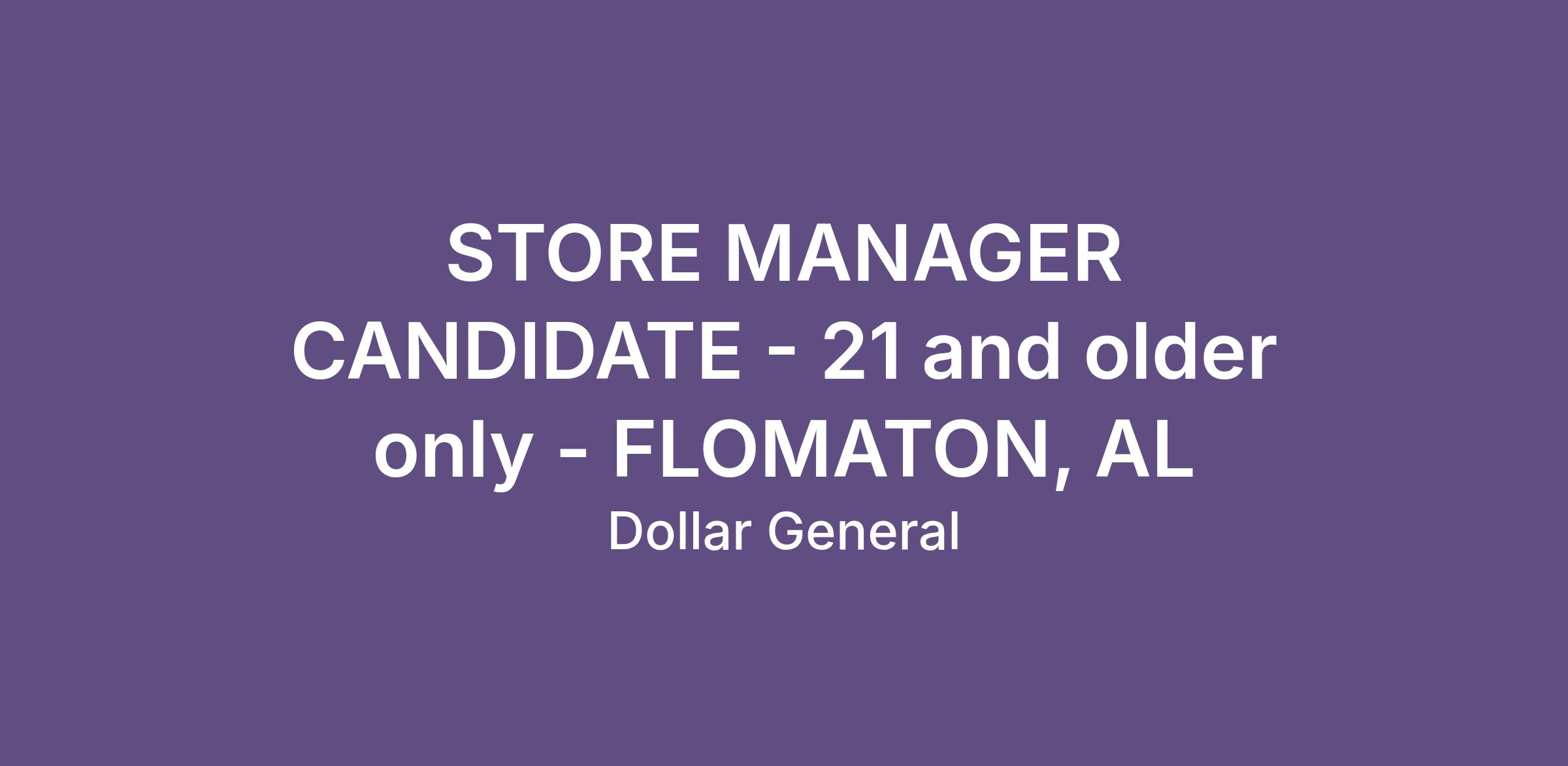 STORE MANAGER CANDIDATE - 21 and older only - FLOMATON, AL