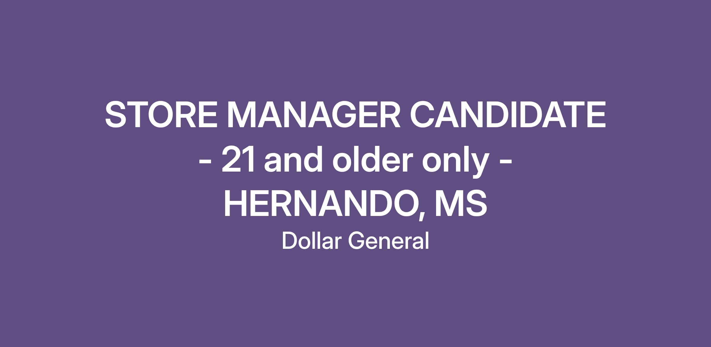 STORE MANAGER CANDIDATE - 21 and older only - HERNANDO, MS